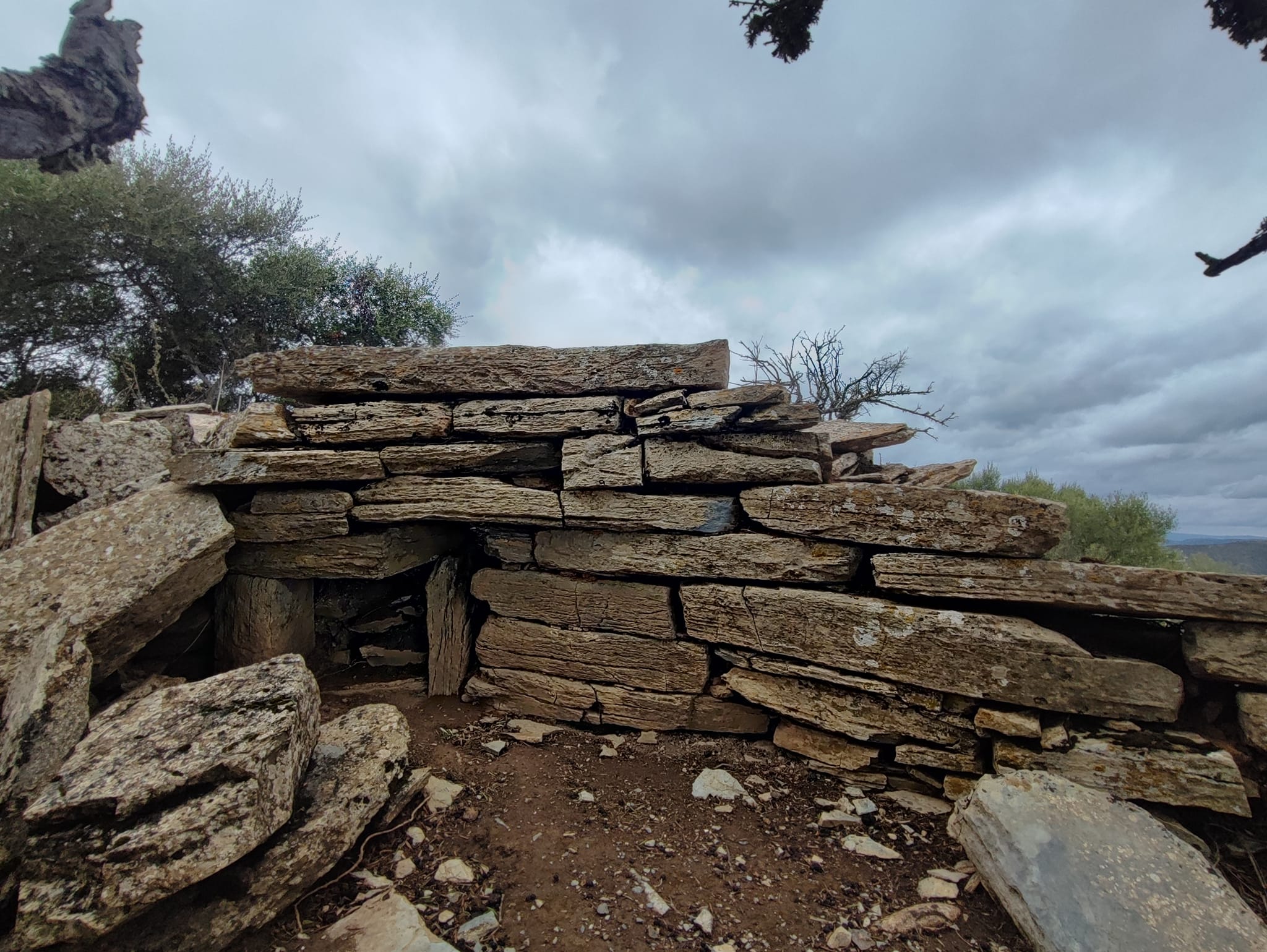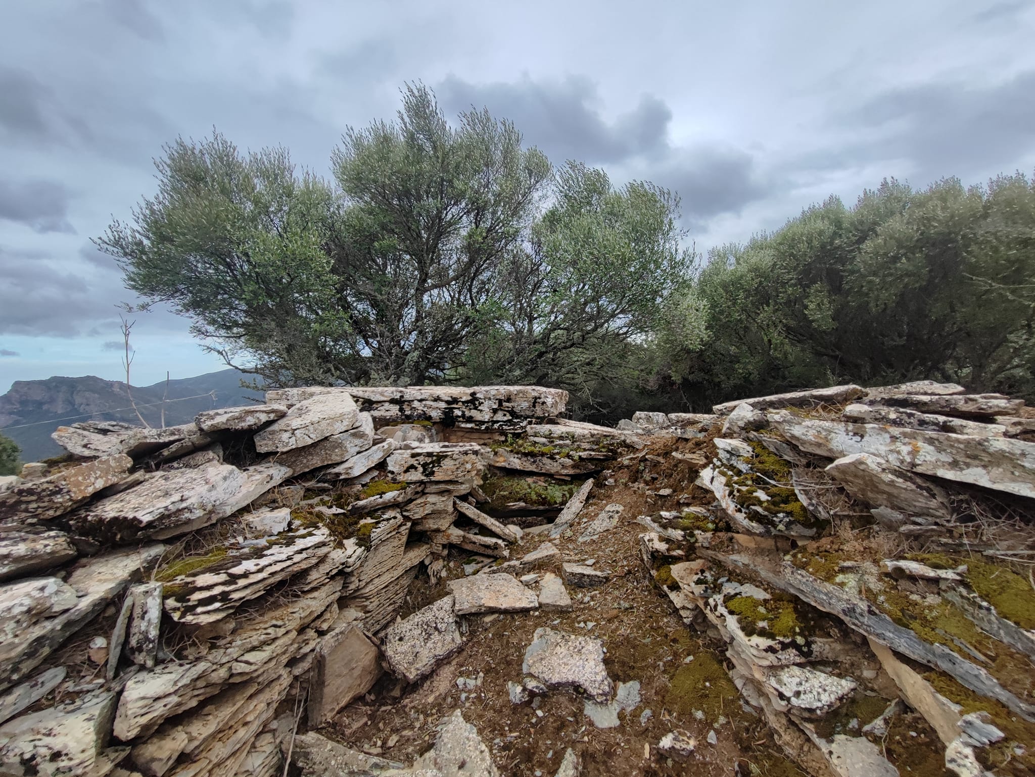 La tomba dei giganti di Bruncu Bullai è ubicata a 3,5 km in linea d’aria ad Est-Sud-Est di Villasalto, raggiungibile per una contorta strada di penetrazione agraria che nell’ultimo tratto è percorribile soltanto a piedi. La tomba è situata sulla sommità di una collinetta, a quota 605 s.l.m, che si presenta a Sud-Ovest con un dolce pendio recintato a vari livelli, mentre i lati Est e Nord cadono a strapiombo sulla vallata sottostante, nella zona denominata Cardera limitrofa al corso del Flumendosa. Il Monumento funerario poggia sullo strato roccioso naturale, di scisto, affiorante in superficie che si presenta in blocchi distinti, formando un suggestivo lastricato naturale. La tomba di giganti è del tipo a filari costruita con lastre di scisto, lunghe circa 1 metro, di cui si conservano, in situ, 6 filari del paramento esterno della camera e 8 filari dell’esedra. (Davide Cotza)
