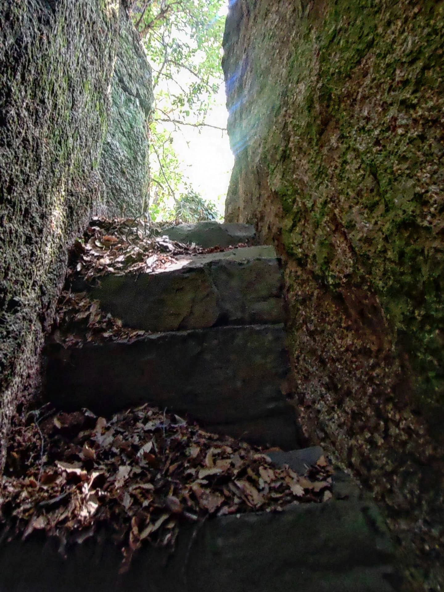 Una delle due scale oggi appare seriamente compromessa dai crolli, mentre l’altra è ancora agibile.