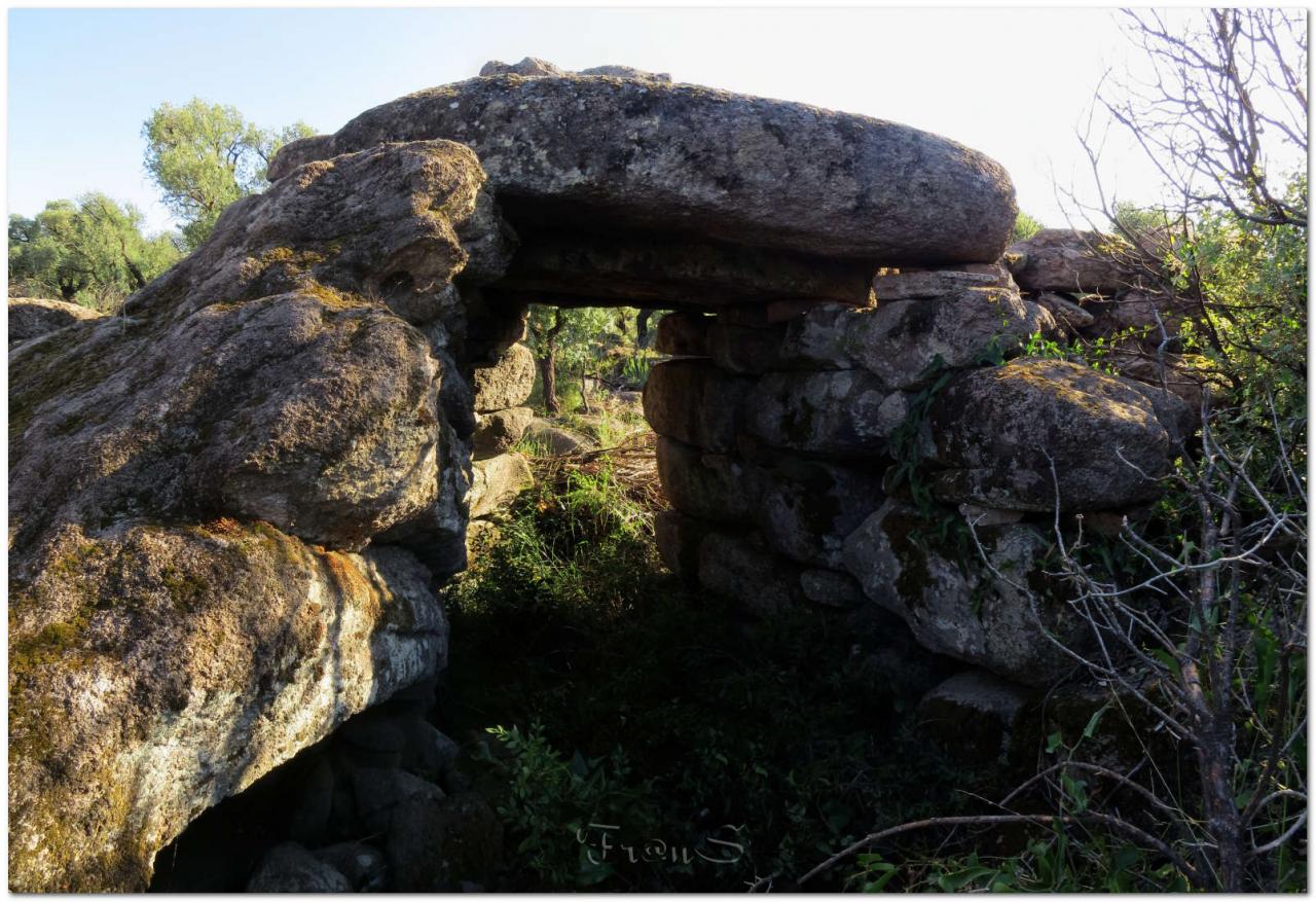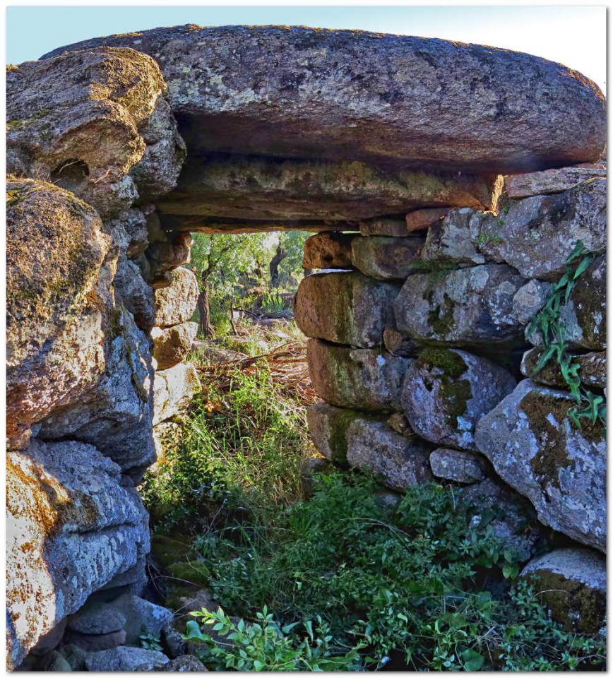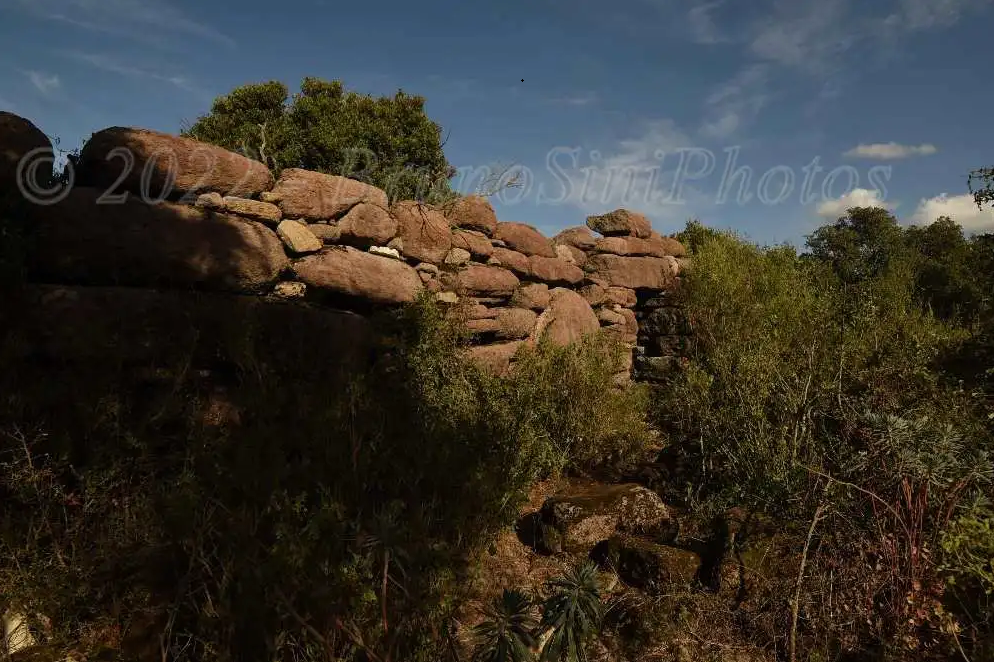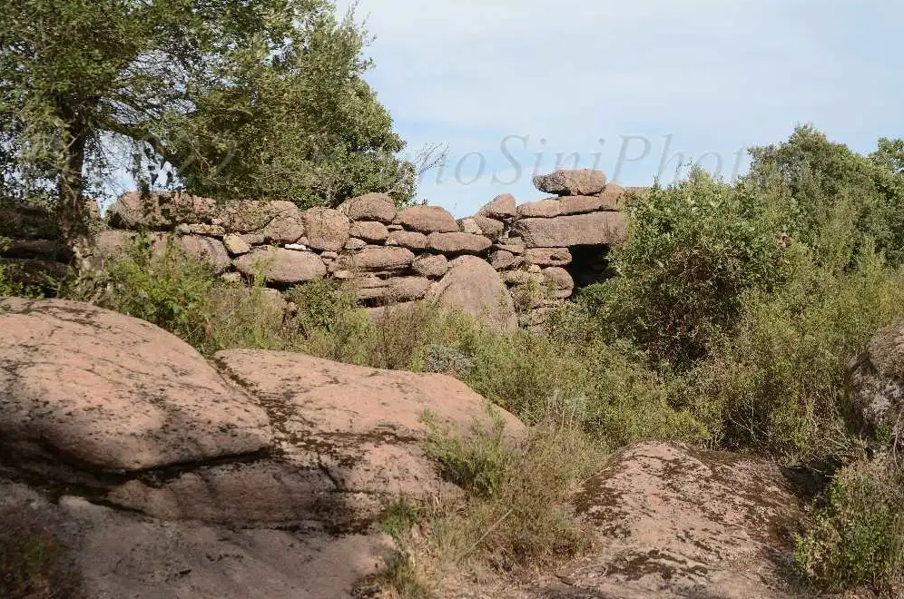 L’ingresso, alto e piattabandato conduce all’interno di quel che doveva essere un ambiente protetto, edificato al limite di uno strapiombo. Sulla sinistra di chi entra troviamo un ambiente circolare, sulla destra del corridoio è rimasto solo il muro perimetrale. (Piera Farina Sechi)
