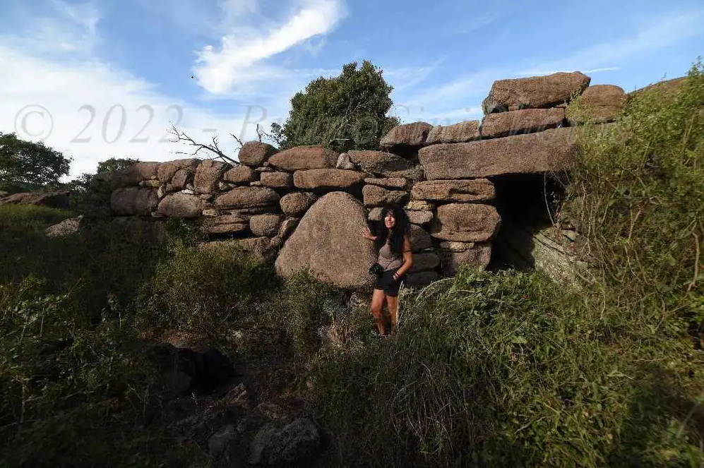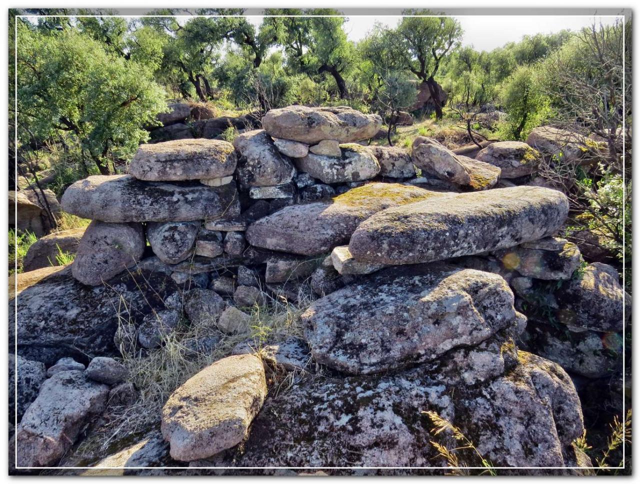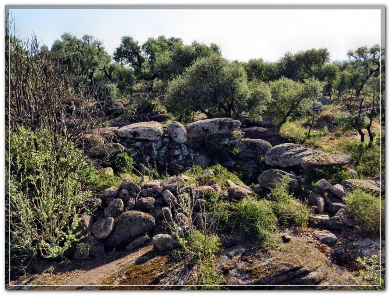 L’ingresso, alto e piattabandato conduce all’interno di quel che doveva essere un ambiente protetto, edificato al limite di uno strapiombo. Sulla sinistra di chi entra troviamo un ambiente circolare, sulla destra del corridoio è rimasto solo il muro perimetrale. (Piera Farina Sechi)