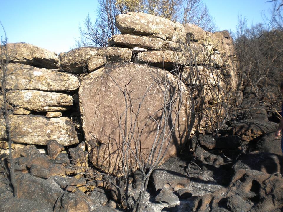Parte di Stele di Tomba dei Giganti utilizzata per la realizzazione di un muretto a secco di confine.