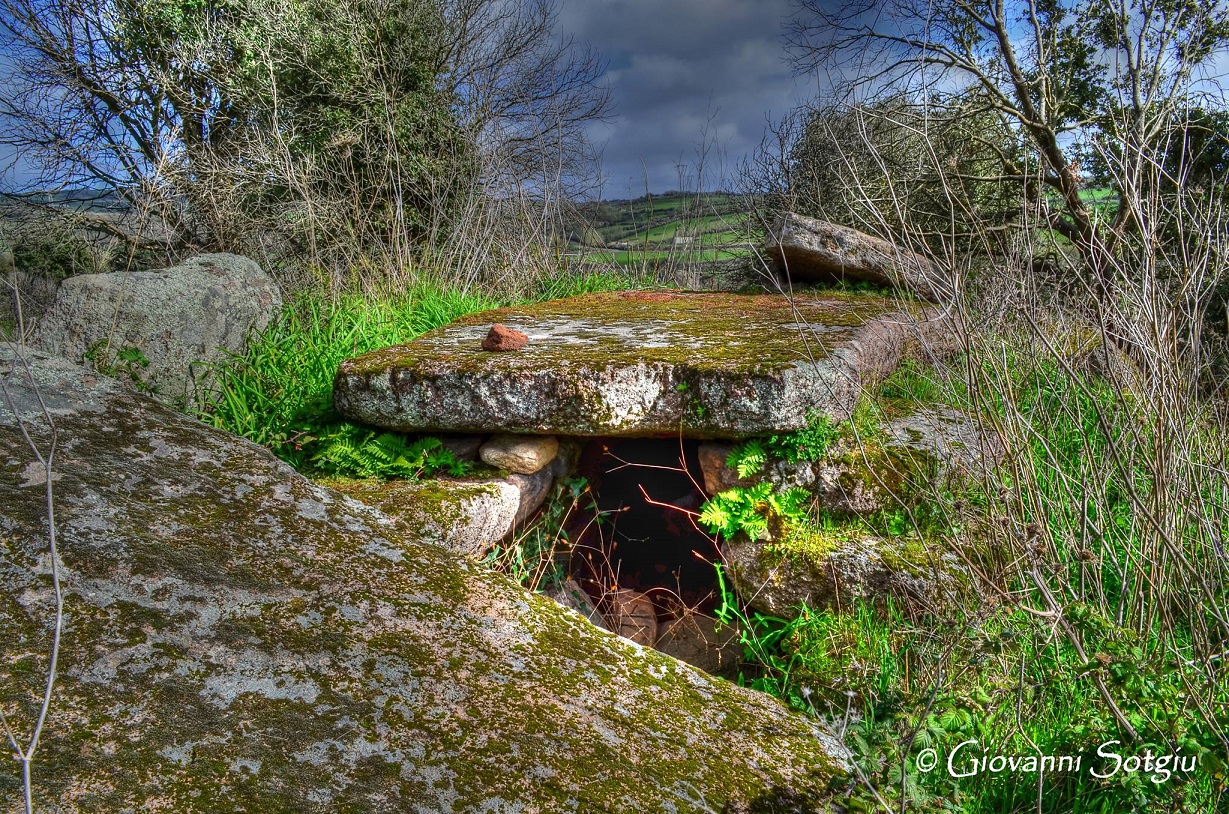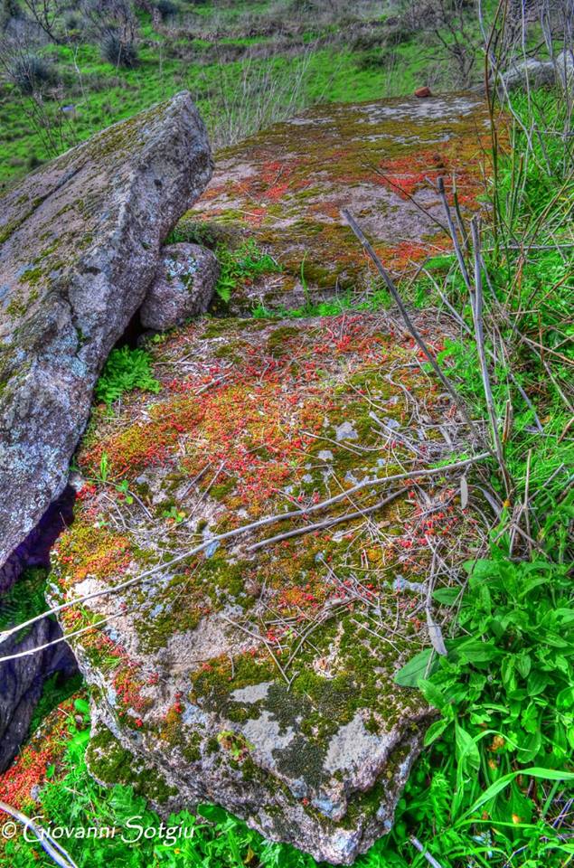 La tomba è coperta da enormi lastroni litici piatti, tra cui uno di lunghezza superiore ai quattro metri