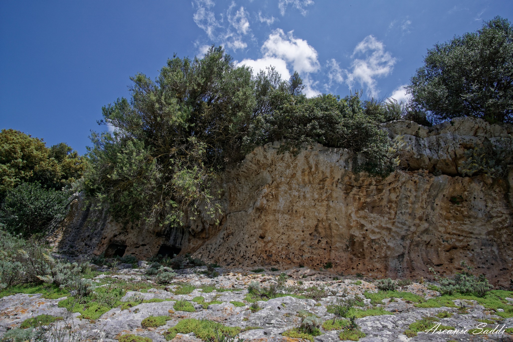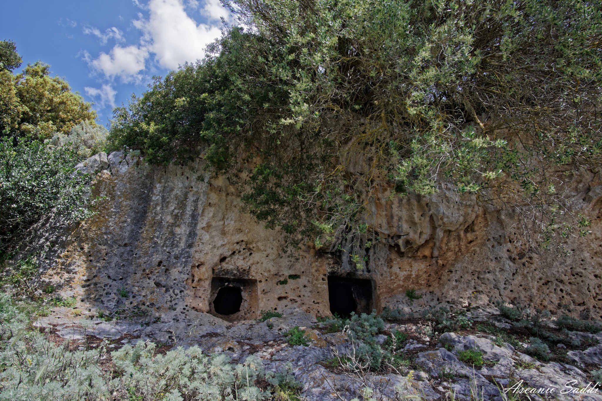 Il villaggio è costituito da tre pozzi sacri e una serie di capanne circolari. Il pozzo meglio conservato si trova nel settore settentrionale dell”area. Costruito con blocchi di scisto locale, si addossa a sud-ovest a una parete rocciosa naturale di modeste dimensioni. L”accesso al vano è decentrato rispetto all”asse della tholos. Quest”ultima è franata nella parte settentrionale. L”area antistante il vano d”ingresso al pozzo è delimitata da una serie di muri curvilinei a diverse quote.