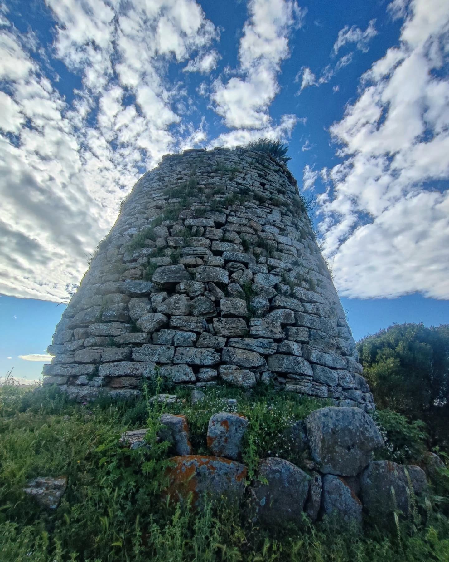 L’edificio, monotorre circolare di circa m 10 di diametro, si adatta all’altopiano, includendo nelle strutture di base affioramenti di roccia. Il paramento murario esterno, costituito da blocchi di calcare sbozzati e disposti in filari regolari, si conserva per un’altezza massima residua di m 8,10. Nei lati esposti a Ovest e a SE, ad un’altezza di m 3/3,5 dal suolo, risulta evidente un intervento di restauro effettuato nell’antichità, resosi necessario a causa del cedimento delle murature.