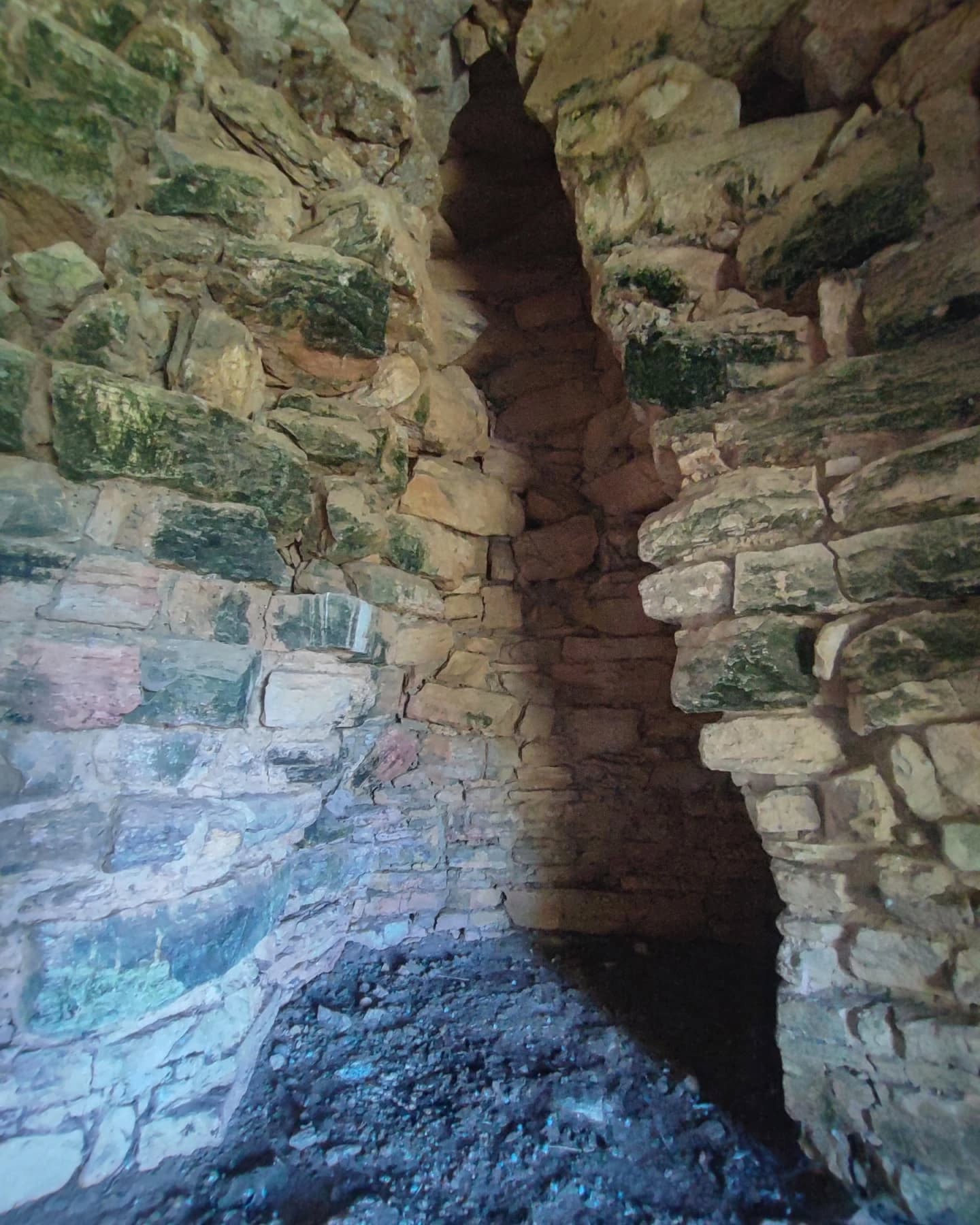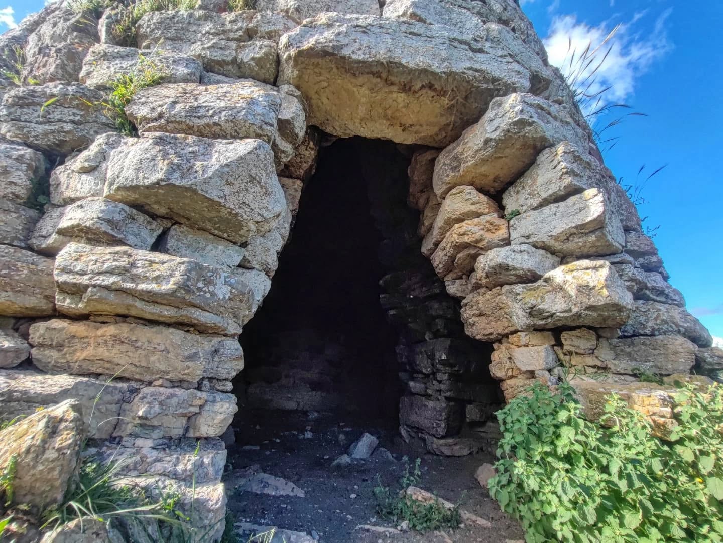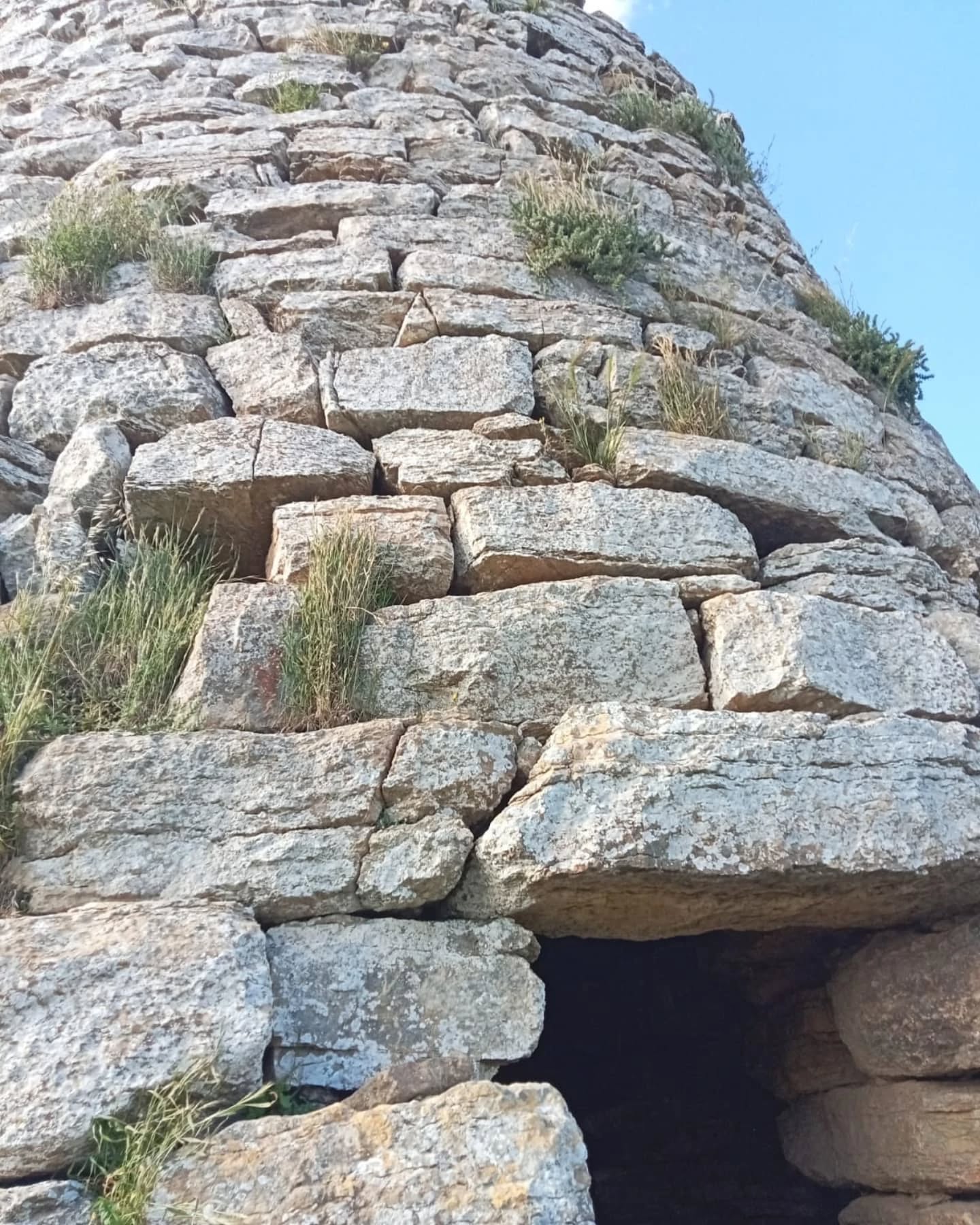 L’edificio, monotorre circolare di circa m 10 di diametro, si adatta all’altopiano, includendo nelle strutture di base affioramenti di roccia. Il paramento murario esterno, costituito da blocchi di calcare sbozzati e disposti in filari regolari, si conserva per un’altezza massima residua di m 8,10. Nei lati esposti a Ovest e a SE, ad un’altezza di m 3/3,5 dal suolo, risulta evidente un intervento di restauro effettuato nell’antichità, resosi necessario a causa del cedimento delle murature.