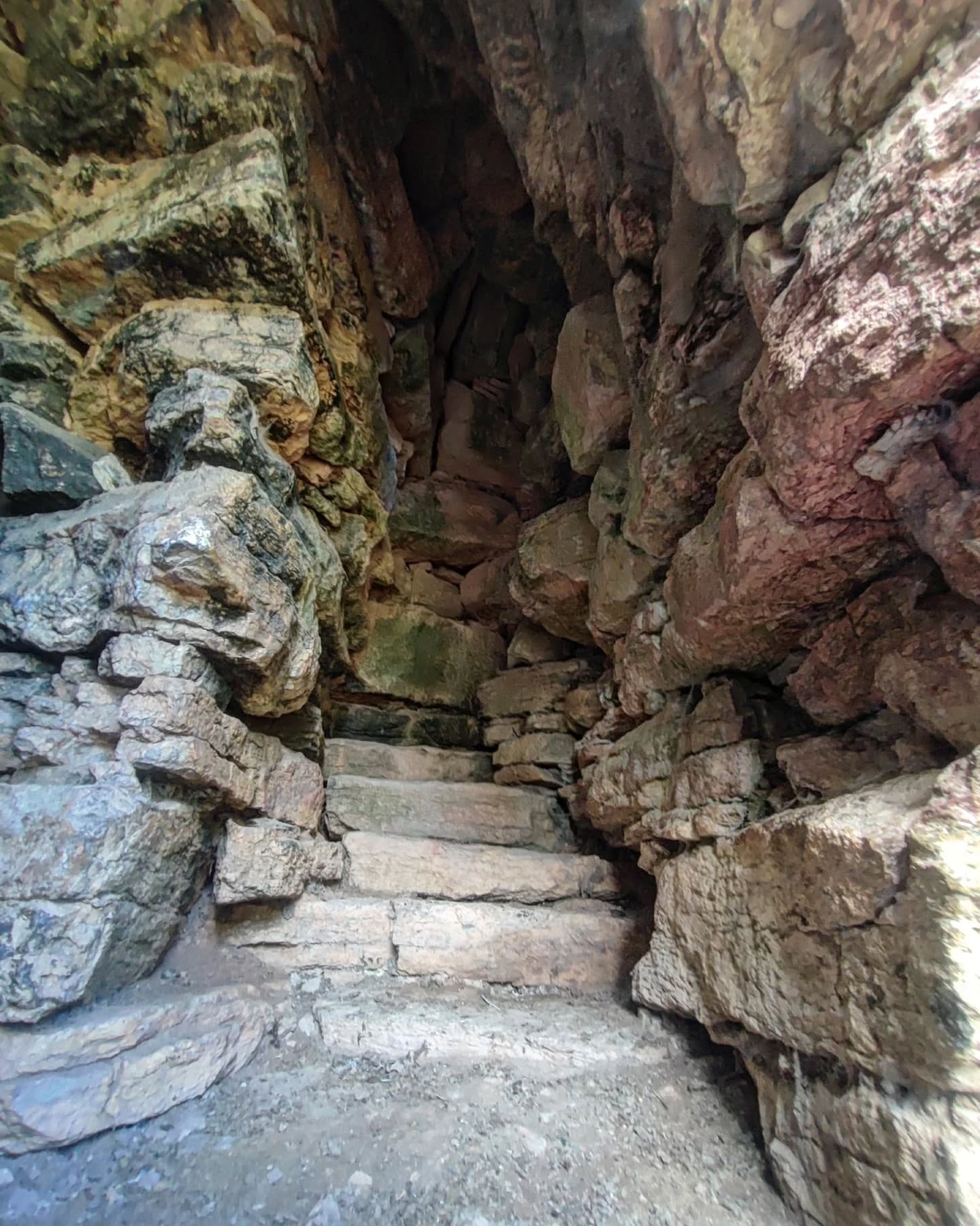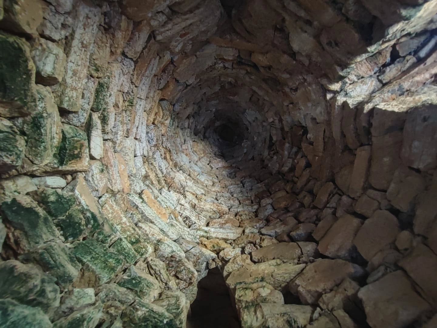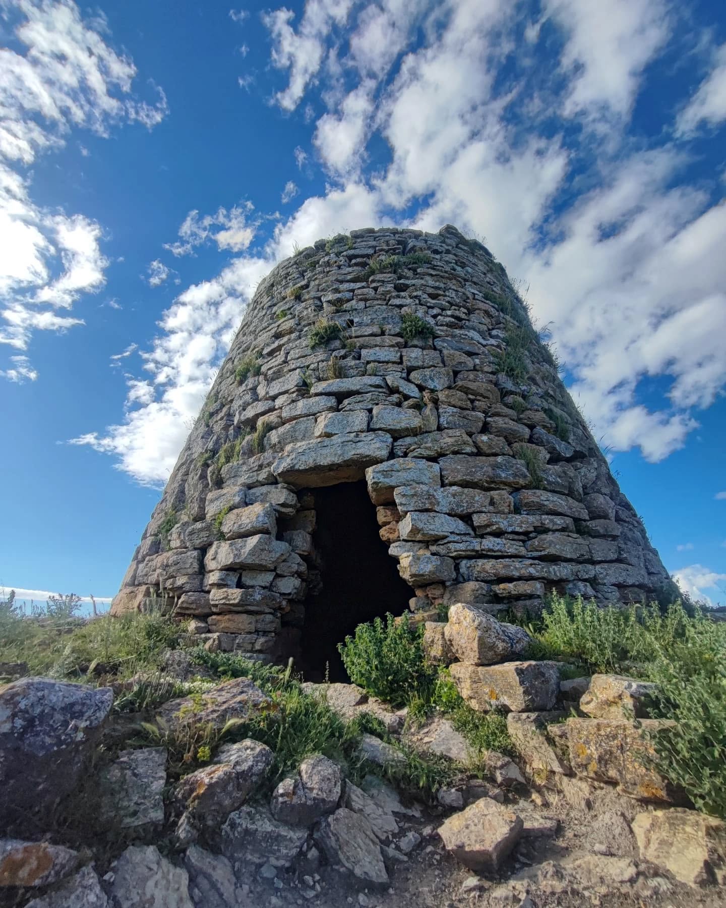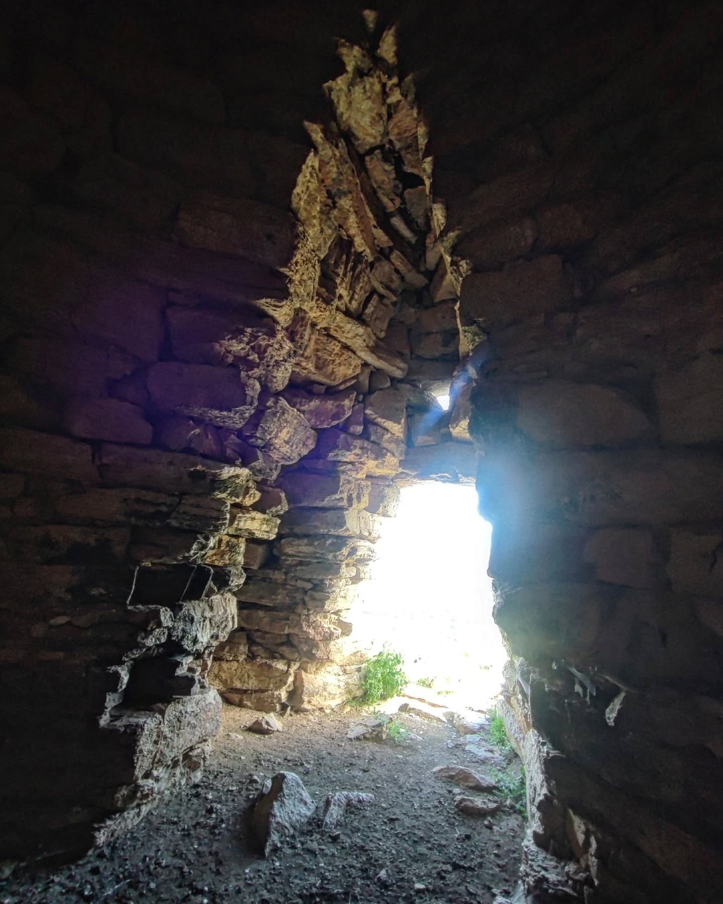 L’edificio, monotorre circolare di circa m 10 di diametro, si adatta all’altopiano, includendo nelle strutture di base affioramenti di roccia. Il paramento murario esterno, costituito da blocchi di calcare sbozzati e disposti in filari regolari, si conserva per un’altezza massima residua di m 8,10. Nei lati esposti a Ovest e a SE, ad un’altezza di m 3/3,5 dal suolo, risulta evidente un intervento di restauro effettuato nell’antichità, resosi necessario a causa del cedimento delle murature.