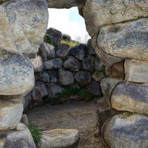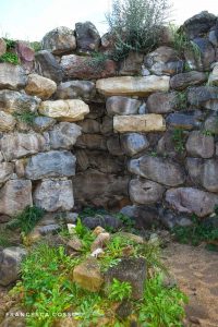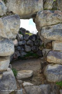 Realizzata in blocchi di basalto, la costruzione presenta un impianto trilobato, con mastio centrale e tre torri secondarie disposte attorno ad un cortile di pianta falciforme. La struttura era circondata da un poderoso antemurale – del quale emergono tracce evidenti – composto da cinque torri e cortine murarie rettilinee, ad eccezione del fianco Nord, naturalmente protetto dai rilievi delle Giare.