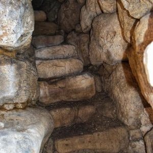 Eretto in blocchi calcarei e marnosi, il nuraghe presenta un impianto planimetrico quadrilobato, con torre centrale e quattro torri esterne orientate secondo i punti cardinali, circondato da cinta antemuraria, e i resti di altre quattro torri. all”interno del complesso è presente un pozzo sacro.