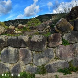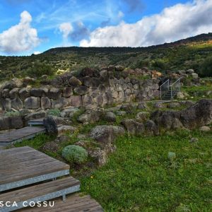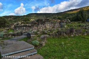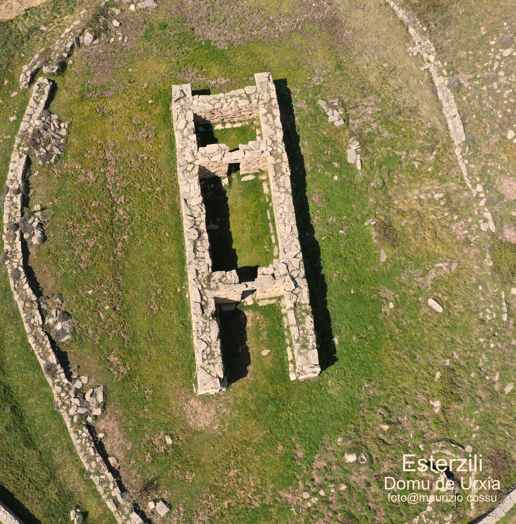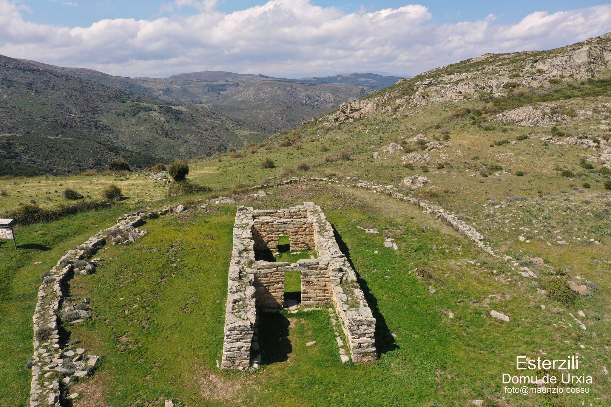 Domu de Orgia di Esterzili è il più grande tempio a “megaron” nuragico finora conosciuto. L’edificio è racchiuso entro un recinto ellittico (m 48,50 x 28; spessore murario di m 1,50) ridotto al solo filare di base, con ingresso ad O.