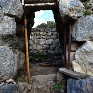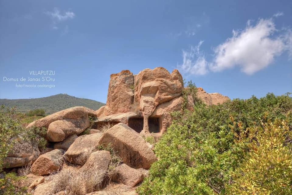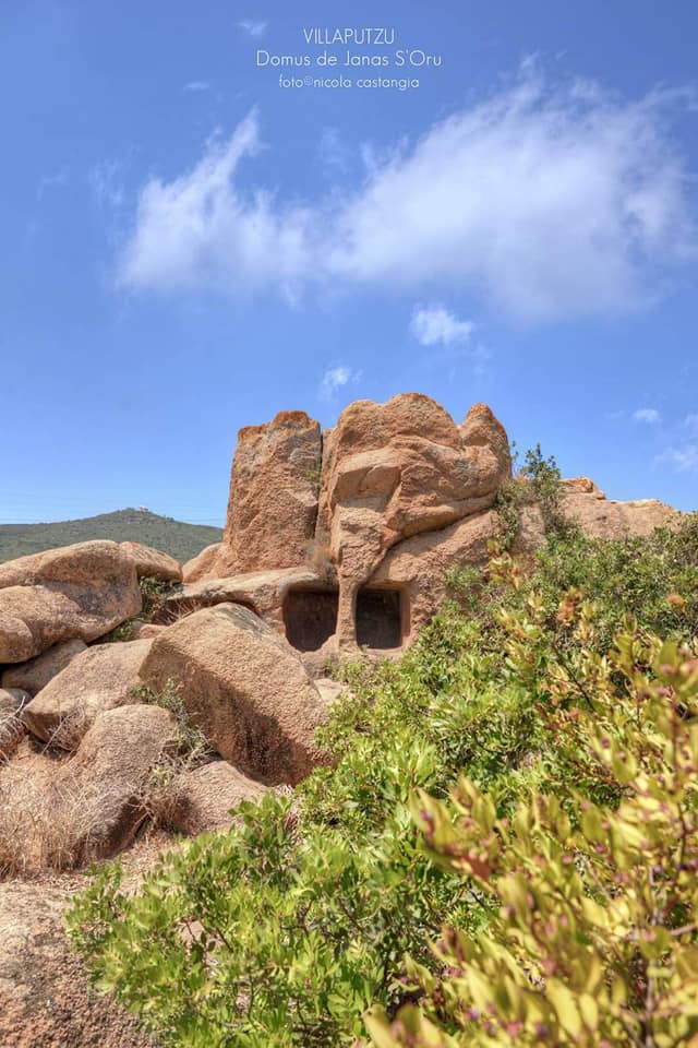 Domu de janas scavata nel granito di particolare suggestione per il doppio portello inframezzato da un pilastro