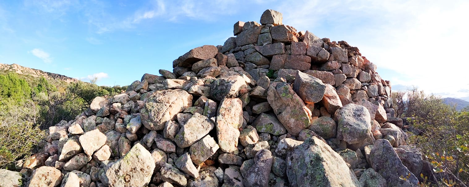 Complesso nuragico formato da un corpo centrale con bastione e quattro torri laterali. Età del bronzo II millennio A.C.. Un grande nuraghe in cima alla collina dominante lo stagno di Colostrai, in una zona che nel periodo nuragico era fortemente abitata. Un approdo e due foci, in parte navigabili totalmente controllati.