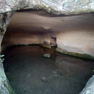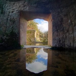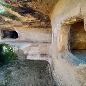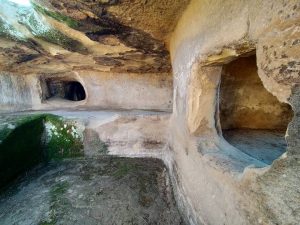 costituita da domus de janas del tipo a proiezione orizzontale e a pozzetto (1, 2, 3, 4), l”altra da domus a pozzetto (5, 6, 7). Particolarmente notevole la tomba 1, risultato di diverse fasi costruttive: originariamente del tipo a pozzetto con anticella e grande cella, poi dotata di un lungo corridoio d”accesso al posto del pozzetto ed ampliata sulla destra della grande cella, annettendo tre camerette sepolcrali di una confinante sepoltura.