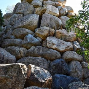 La Necropoli di Pranu Narbonis è costituita da un gruppo di tre domus ancora in ottimo stato di conservazione, scavate su un unico grande blocco di pietra granitica che affiora dal terreno.
