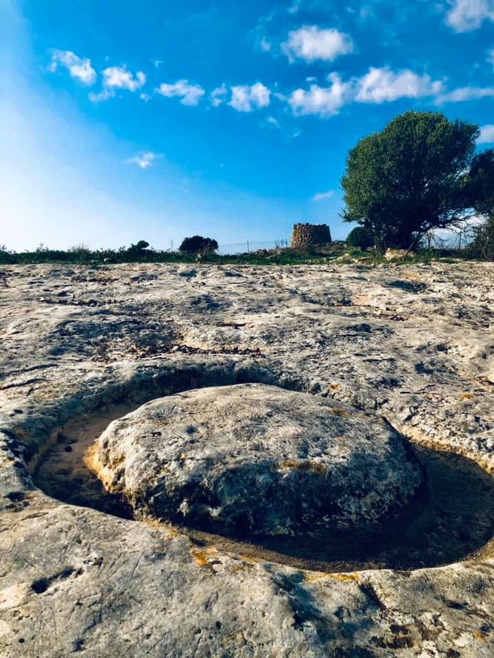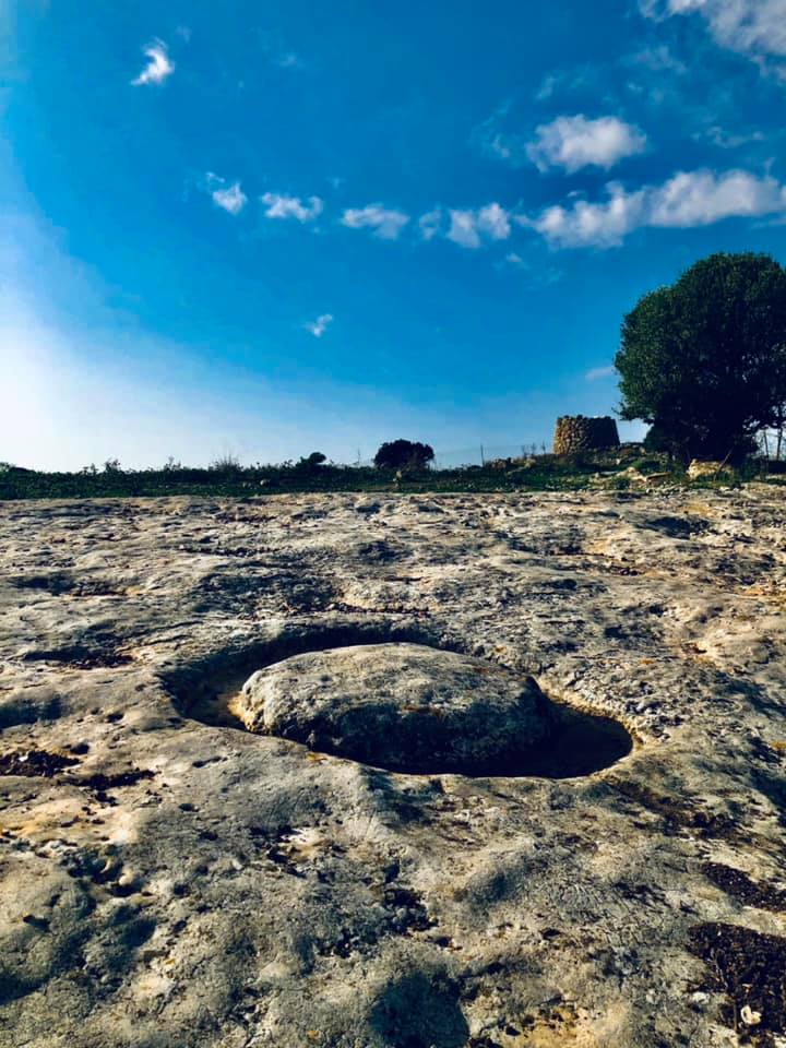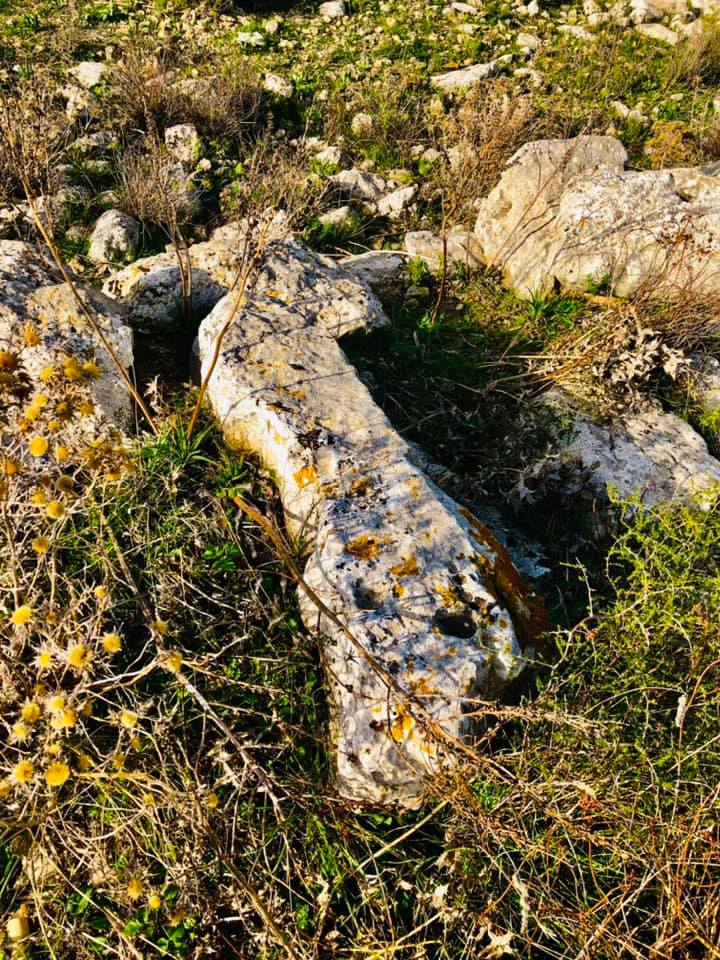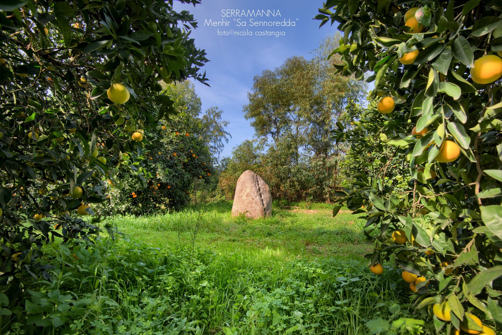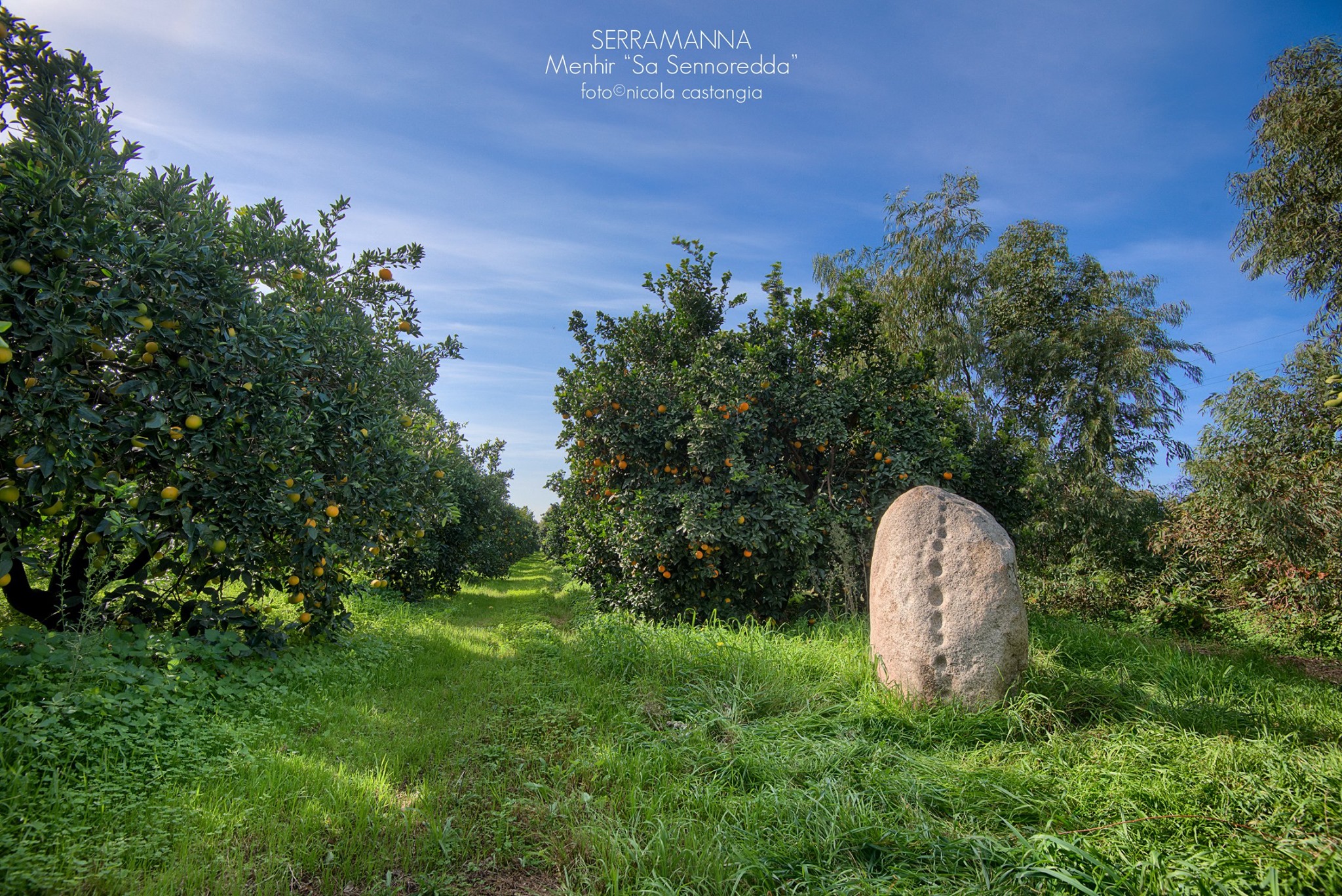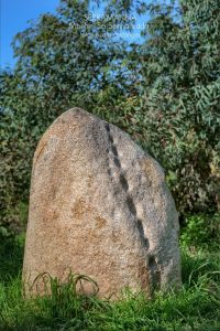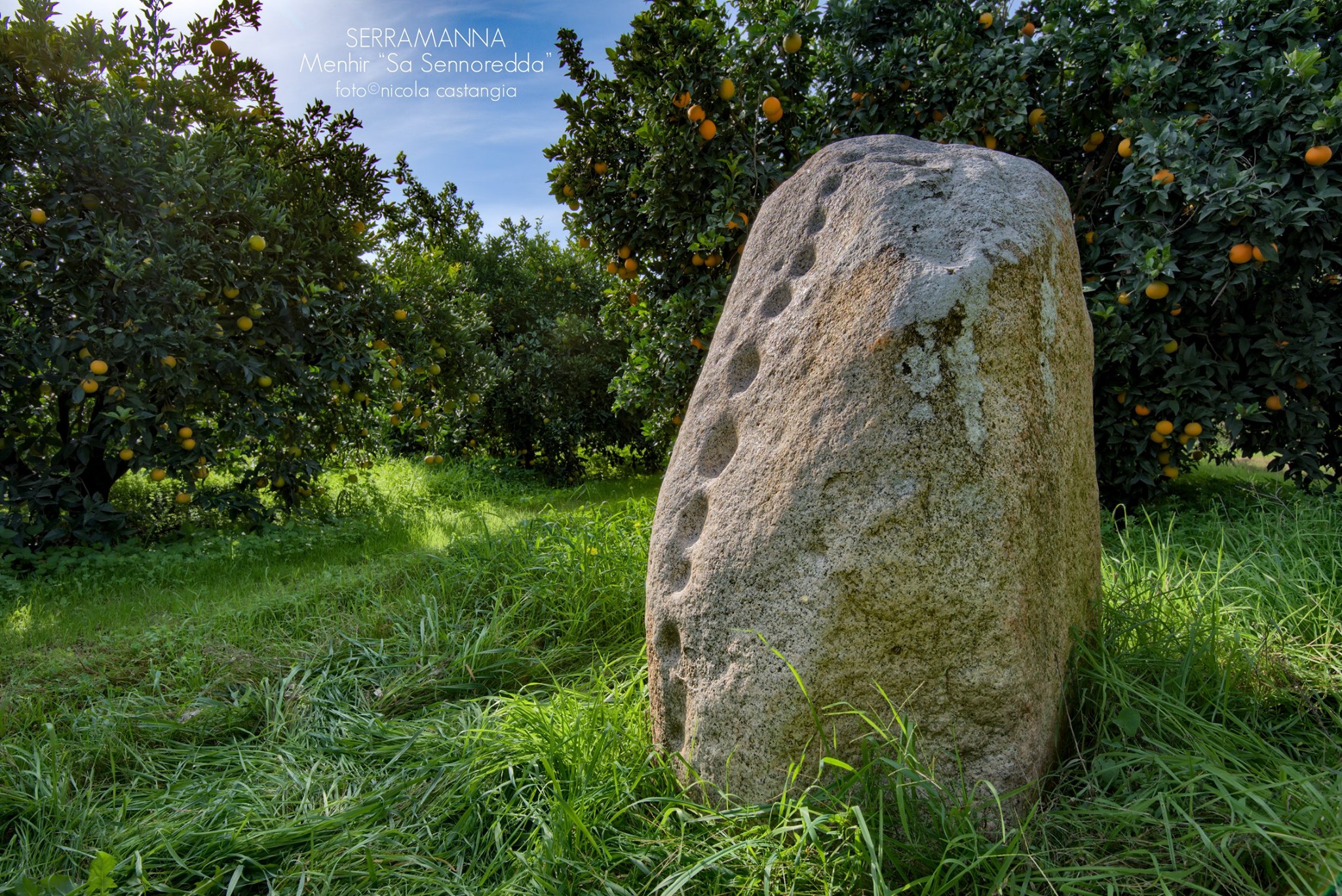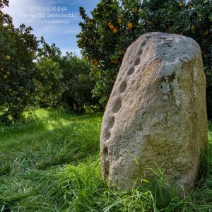 Menhir isolato, sul dorso del quale è riportato un allineamento di coppelle.