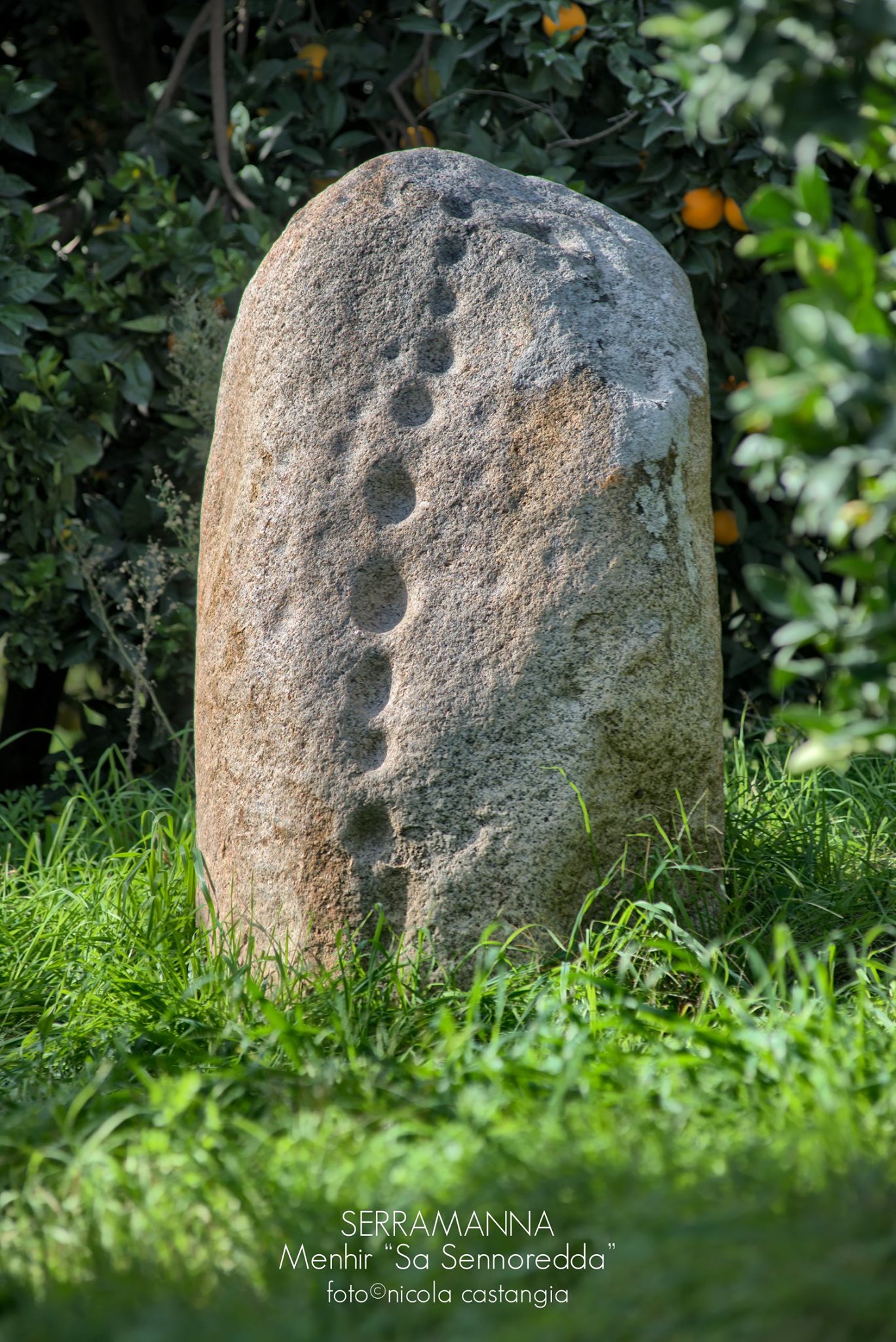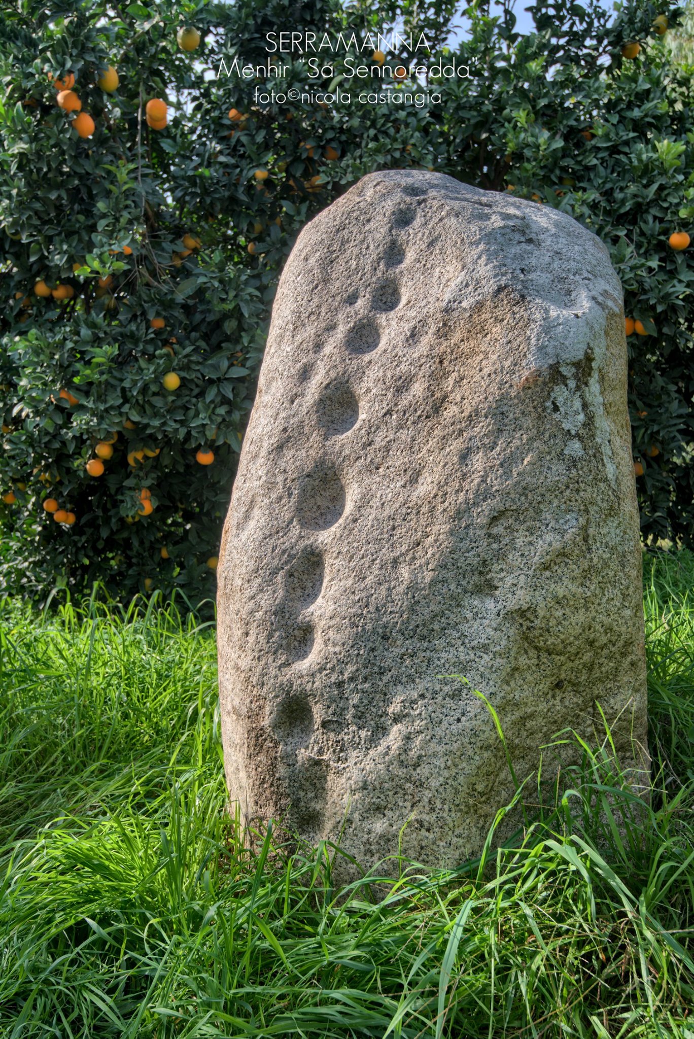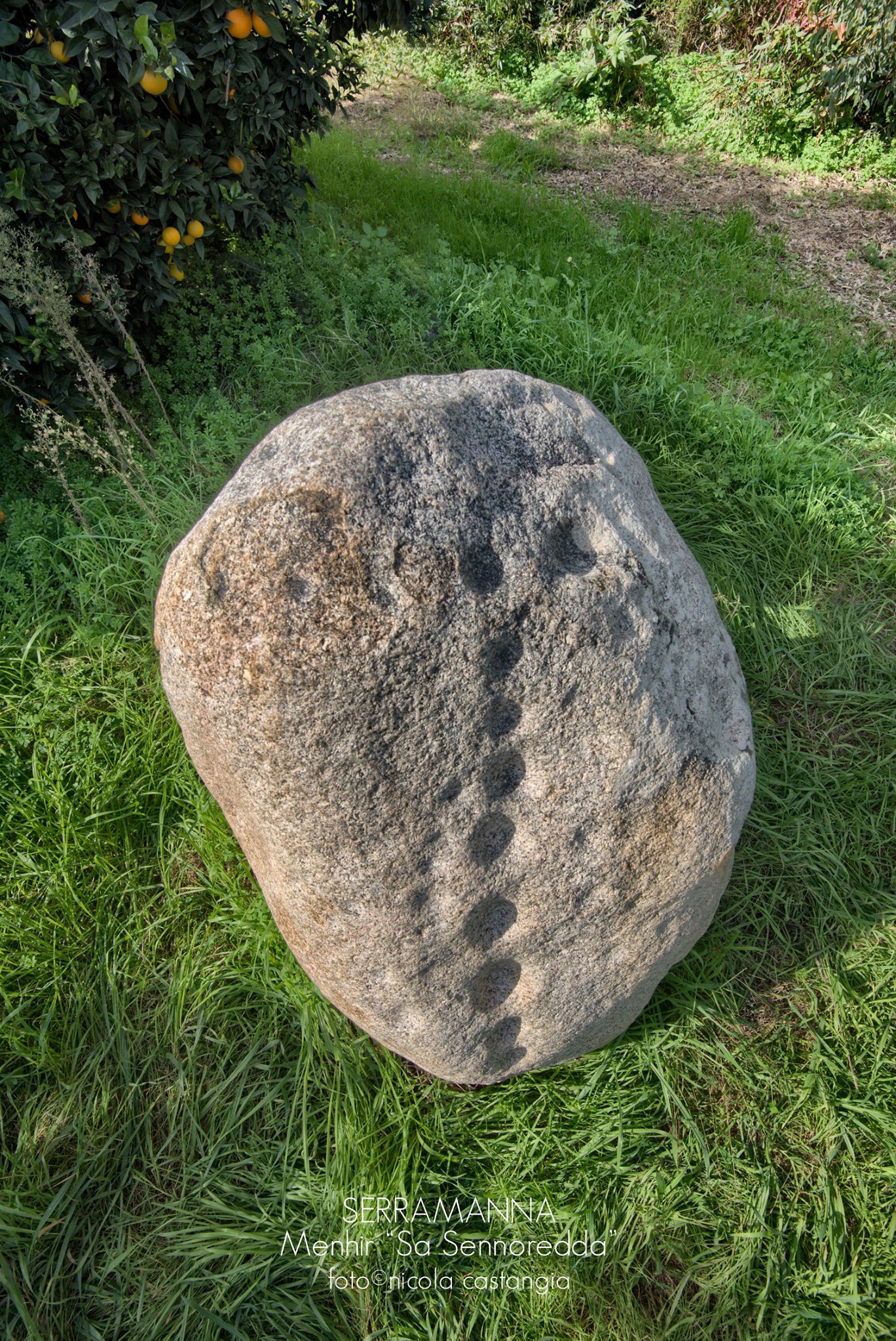 Menhir isolato, sul dorso del quale è riportato un allineamento di coppelle.