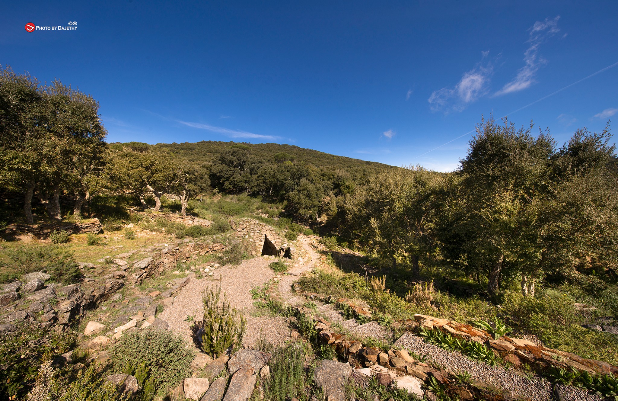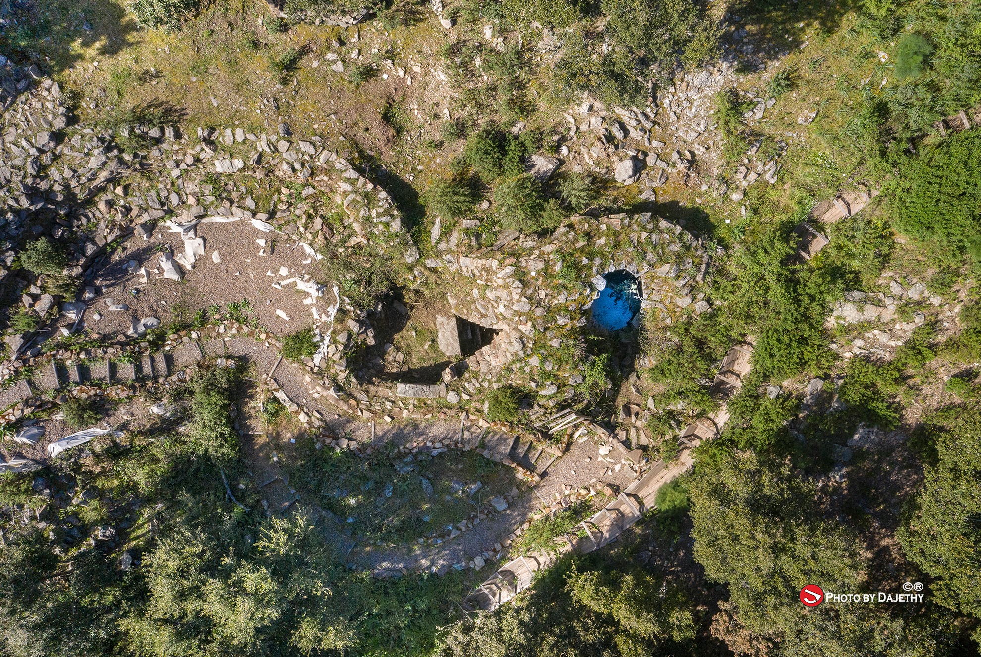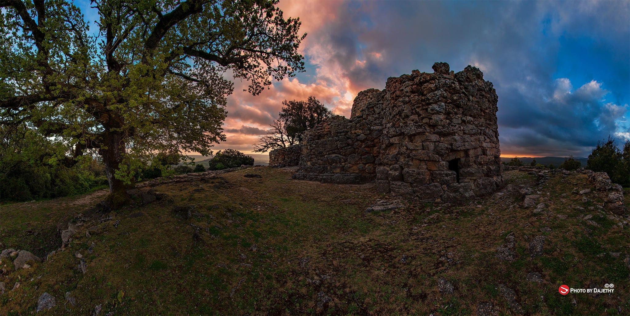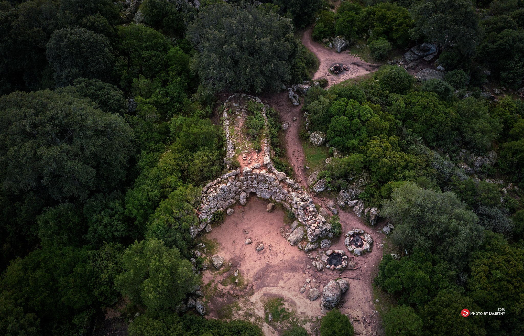 Il villaggio comprende tre pozzi sacri e una serie di capanne circolari. Il pozzo meglio conservato si trova nel settore settentrionale dell”area. Costruito con blocchi di scisto locale di medie dimensioni, si addossa a sud-ovest a una parete rocciosa naturale di modeste dimensioni. L”accesso al vano è decentrato rispetto all”asse della tholos. Quest”ultima è franata nella parte settentrionale. L”area antistante il vano d”ingresso è delimitata da una serie di muri curvilinei a diverse quote.