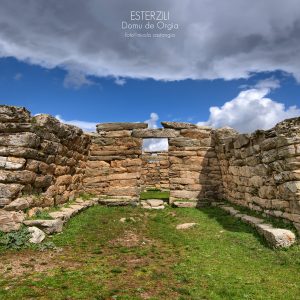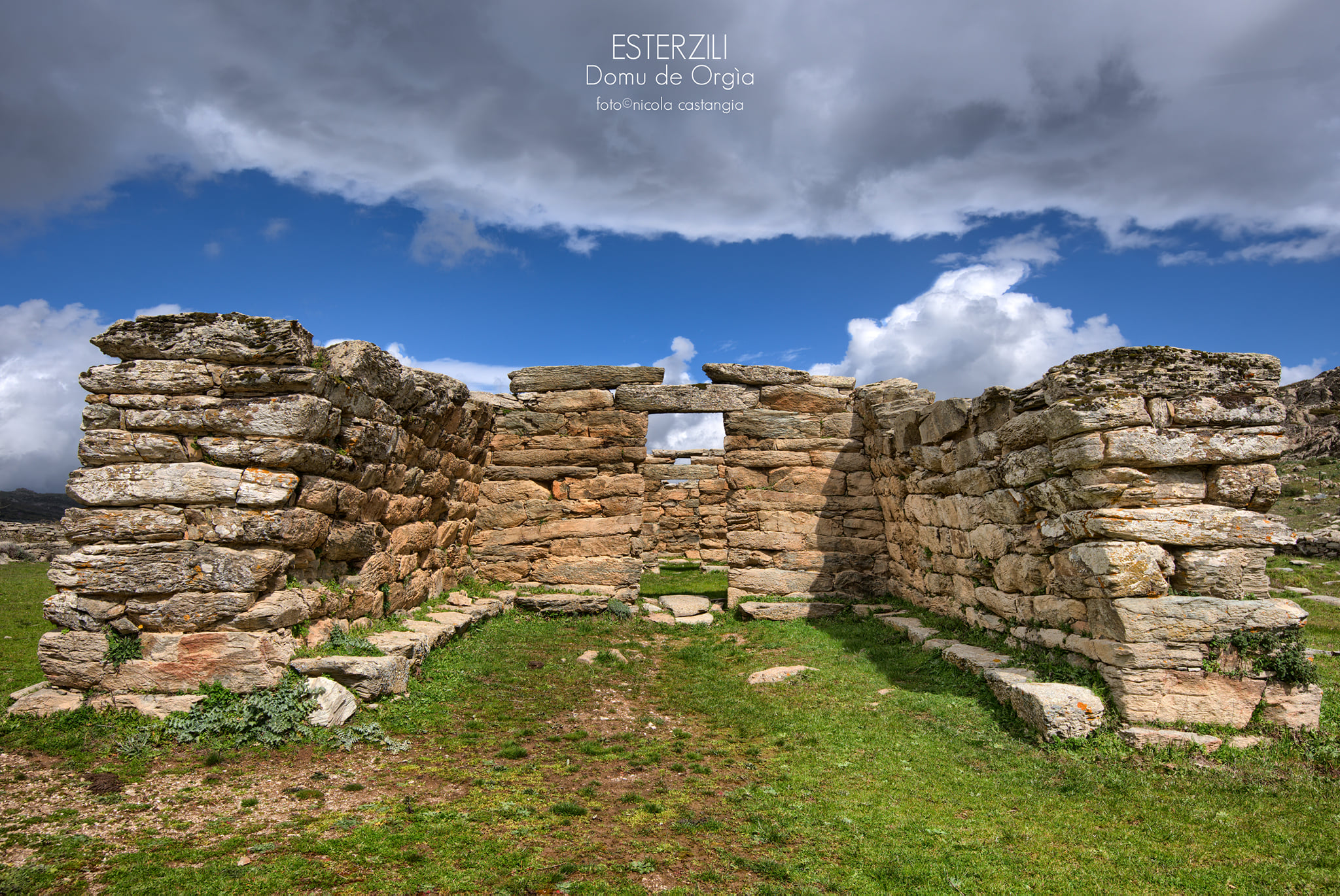 Domu de Orgia di Esterzili è il più grande tempio a “megaron” nuragico finora conosciuto. L’edificio è racchiuso entro un recinto ellittico (m 48,50 x 28; spessore murario di m 1,50) ridotto al solo filare di base, con ingresso ad O. Queste ed altre informazioni: