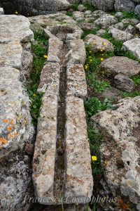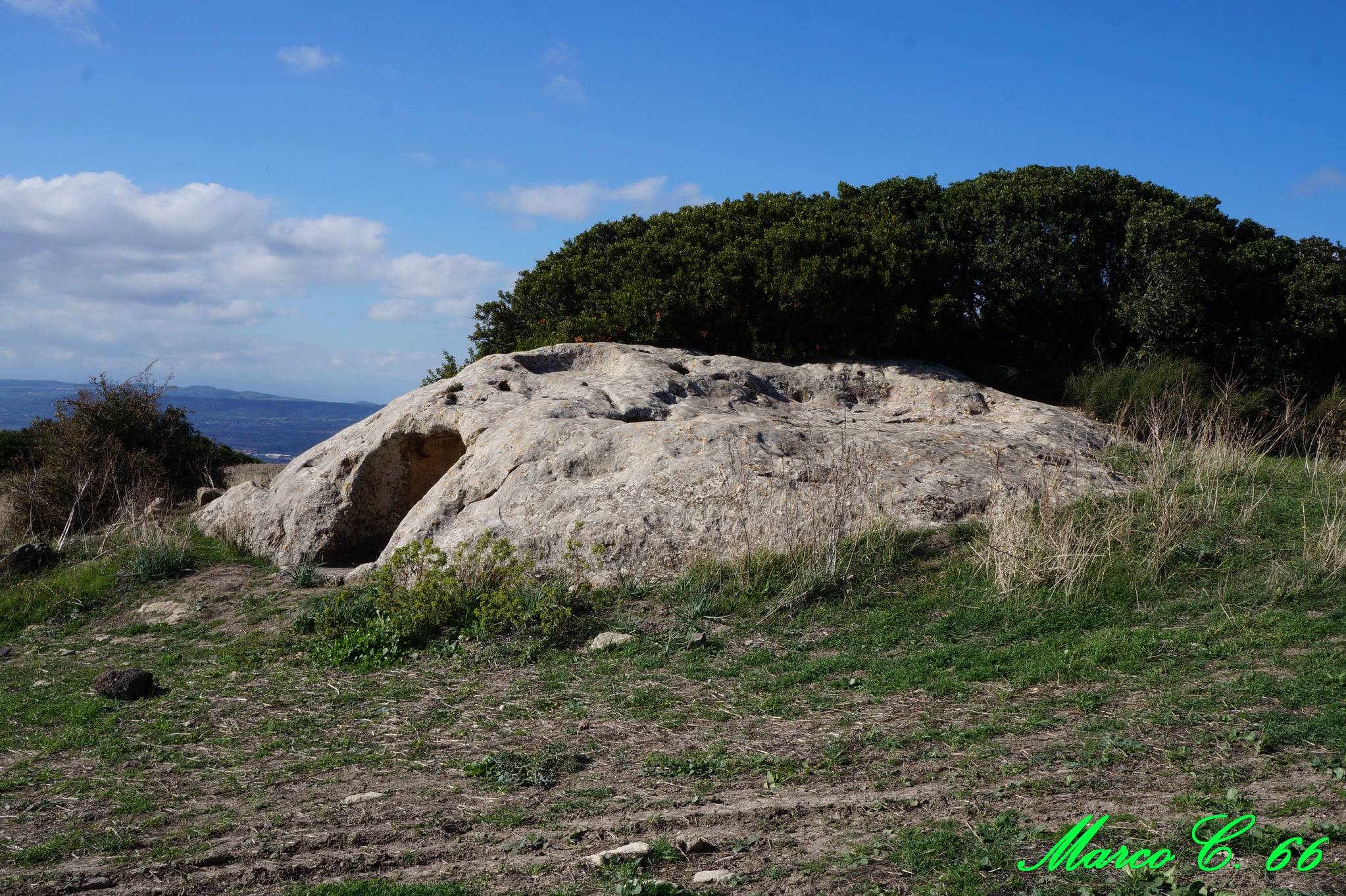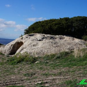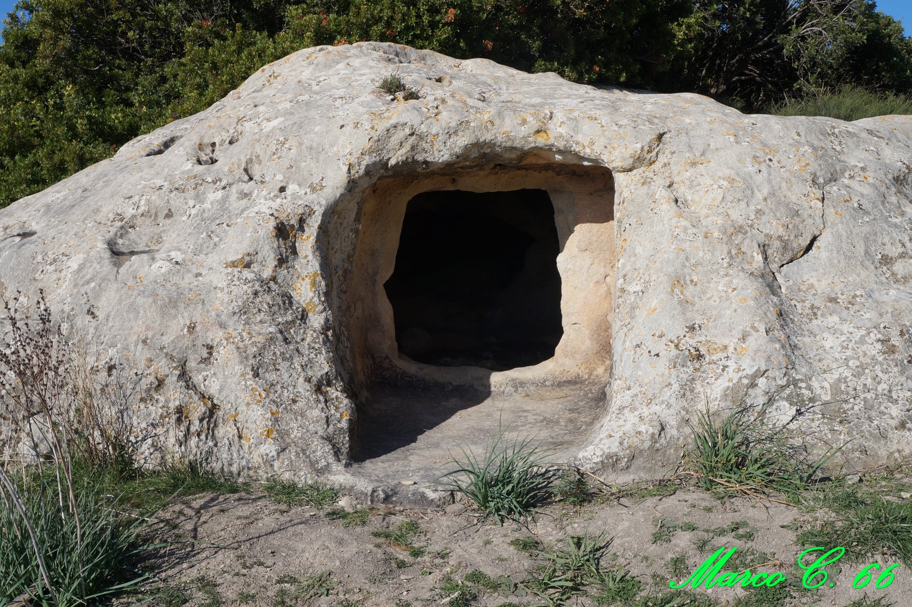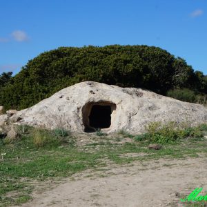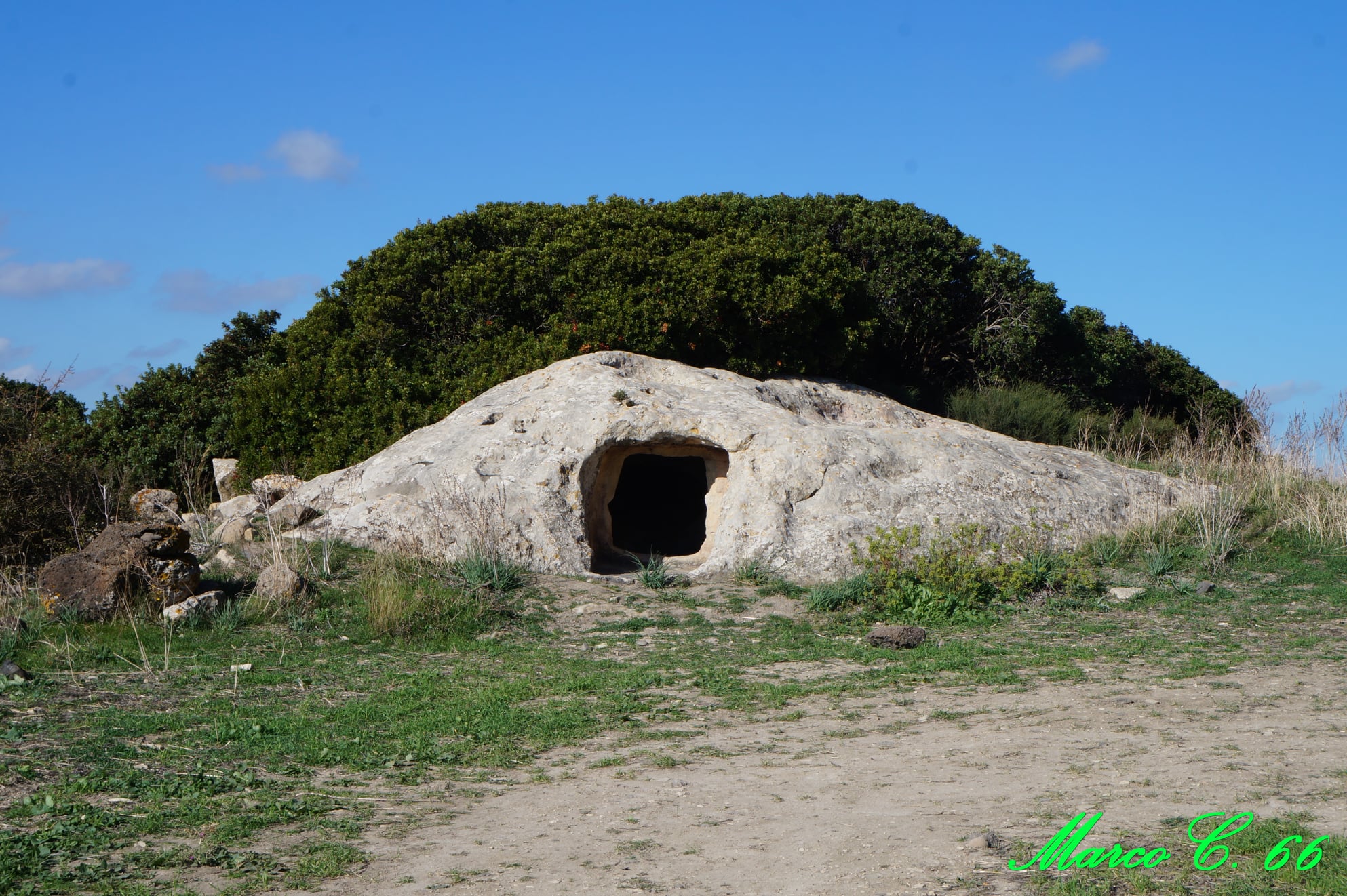 E’ una piccola grotta artificiale scavata in un unico blocco tondeggiante di pietra calcarea. L’ingresso, a bocca di forno, è esposto a Sud-Est e immette in un ambiente a sviluppo longitudinale, strutturato in più vani, che dovevano costituire le camere di una sepoltura ipogeica. La tomba non presenta alcun motivo decorativo e non ha restituito corredo funerario. Viene datata al neolitico recente e dimostra la frequentazione del territorio fin dall’età prenuragica.