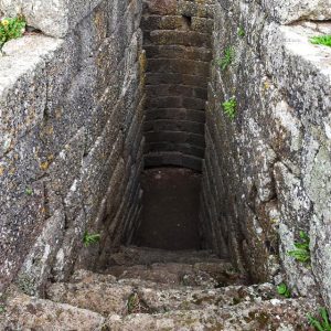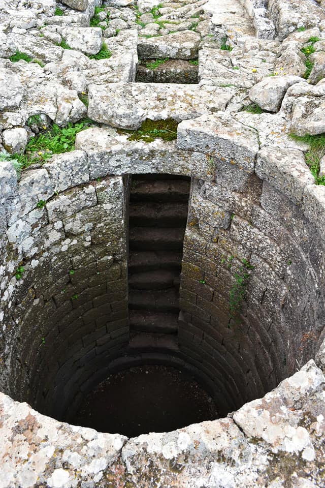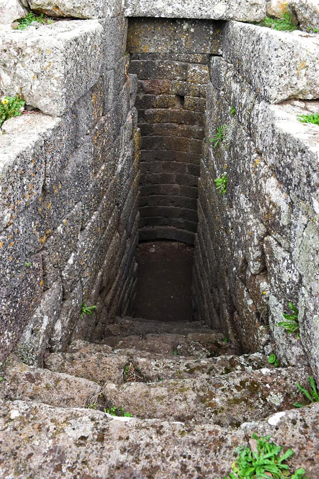 Il tempio a pozzo è il luogo più importante di tutto il santuario, tale da essere riconosciuto per primo e subito oggetto di scavi. Datato al IX secolo a.C. dall’archeologo Anati nel 1985[2], il sito venne costruito con la tecnica ciclopica, la medesima utilizzata per i nuraghi, ma al contrario di questi con pietre molto curate e non sbozzate. . Nell’antichità il tempio era coperto.