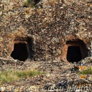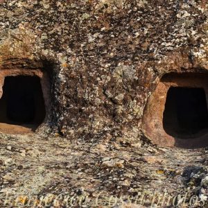 Sul monte Zara sono presenti nove domus, fra cui due appaiate che sono dette popolarmente Is ogus de monti ovvero “gli occhi del monte”, soprannome davvero appropriato. Una maestosa scalinata di una sessantina di gradini interamente scavati nella pietra ci conduce alla sommità del monte da cui si gode un ampio panorama della costa cagliaritana. Qui è situata un’area sacra nuragica risalente al VII secolo a.C. con un altare e alcune cisterne per la raccolta di acqua piovana.