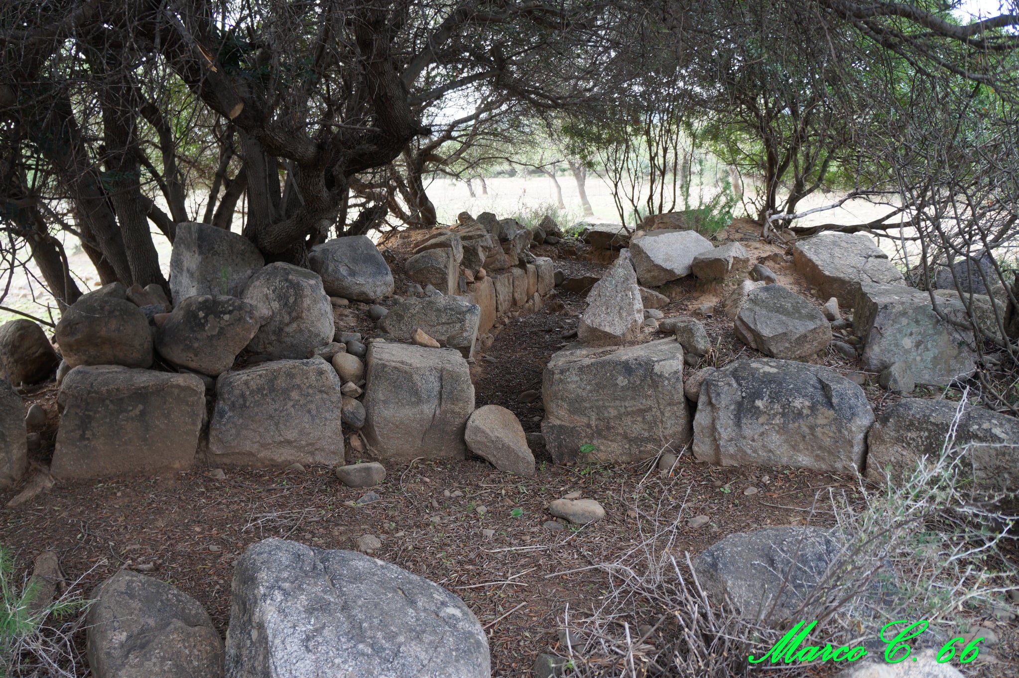 La tomba di giganti di Funtana’e Landiri (2), si trova all’estremità meridionale della piana lievemente ondulata di Sa Spragaxa, a circa 400 metri ad ovest del rio Santu Barzolu e poco distante dal corso d’acqua confluente di sinistra dello stesso. Da sud era dominata dal modesto rilievo di Bruncu Senzu, dove un tempo sorgeva il nuraghe omonimo, ormai scomparso. Attualmente il monumento è compreso all’interno di un mandorleto abbandonato ed è nascosto alla vista da macchioni di olivastro. Da indagini archeologiche a Sinnai. A cura di Maria Rosaria Manunza.