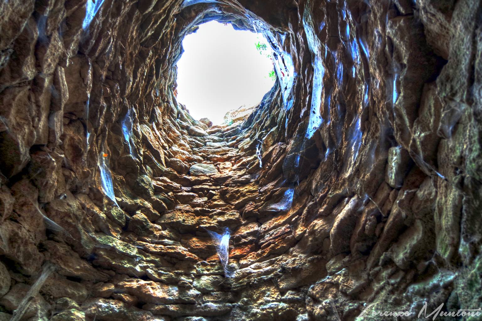 La torre, troncoconica presenta sul lato sud un vistoso cedimento strutturale che dall”ingresso arriva fino allo svettamento, interessando anche parte della “tholos”. Dall”ingresso, orientato a sud/sud-est e mancante dell”architrave, si accede ad un andito strombato verso l”interno con copertura ad ogiva parzialmente residua. Sul lato sinistro del corridoio si apre l”accesso alla scala d”andito con copertura a piattabanda, della quale residuano tre blocchi.