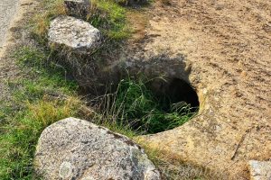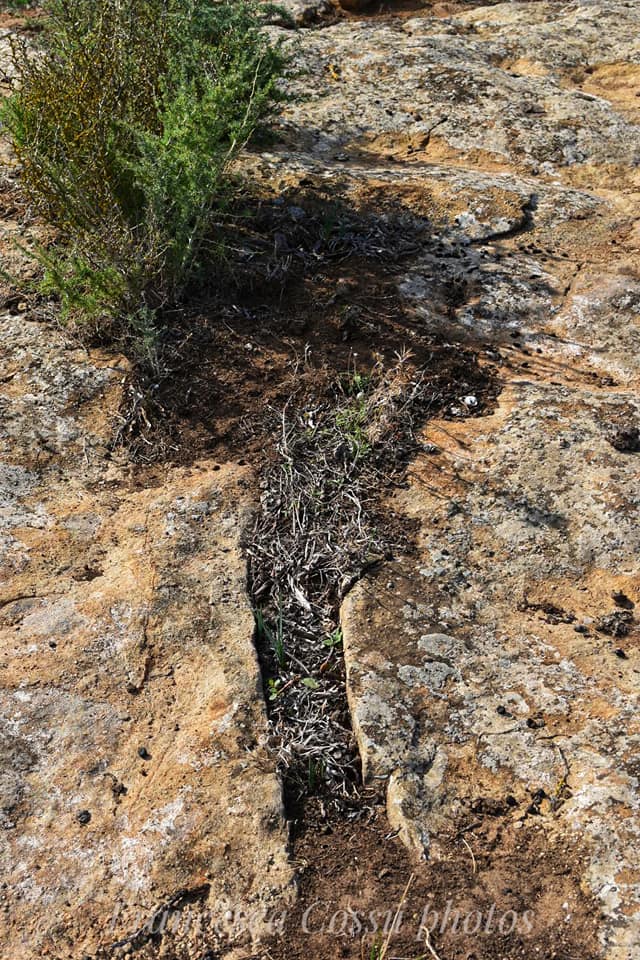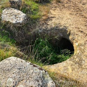 Gli ipogei presenti nel sito sono due: la prima tomba è quella più interessante perché mostra una serie di incisioni sopra il portello d’accesso; la seconda si trova poco più in là, in prossimità del ciglio della strada ed ha l’ambiente interno quasi del tutto allagato. Entrambe le sepolture sono a pozzetto e risalirebbero al 3000 a. C circa.