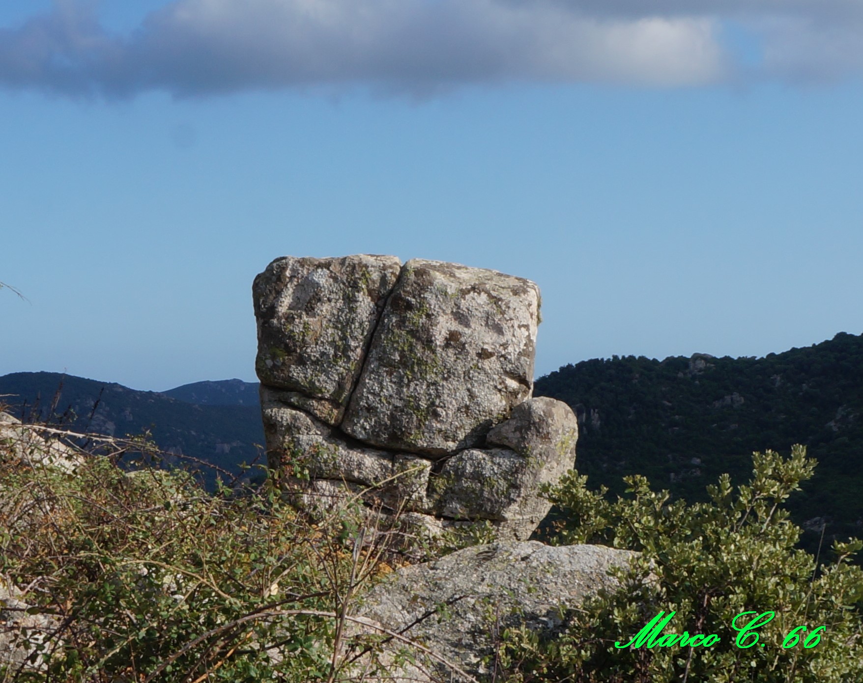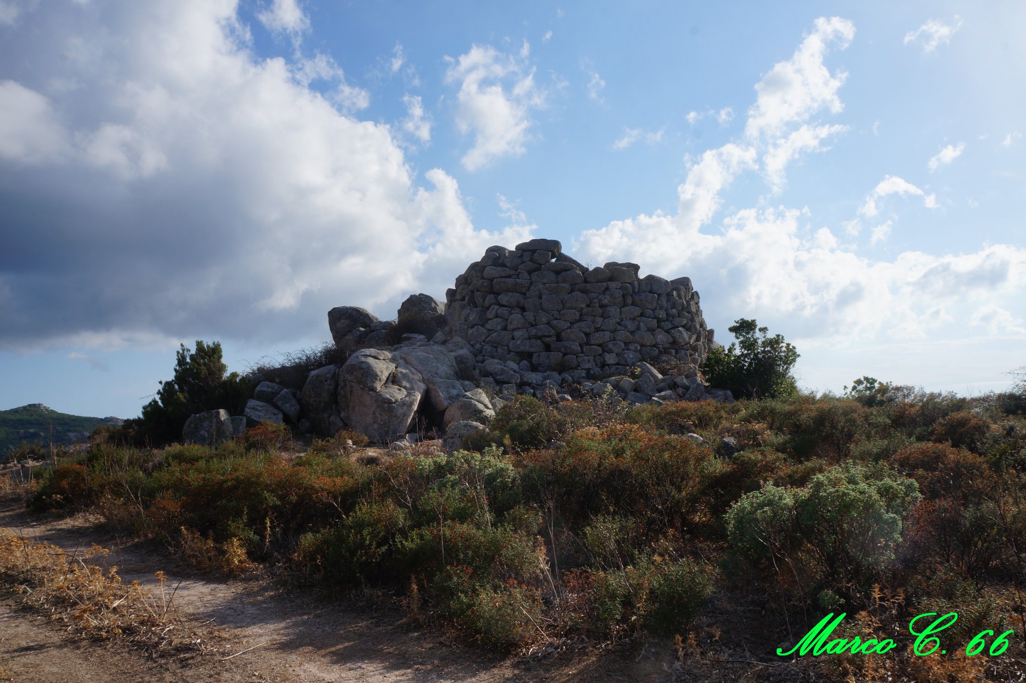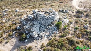 L’imponente nuraghe Sa Fraigada è un monotorre situato a poche decine di metri dalla cima del Monte Cresia ed è il più grande della zona. L’antico edificio nuragico ha subito dei crolli importanti, tanto da renderne poco comprensibile la sua planimetria; l’ingresso architravato, presumibilmente situato ad est, non è visibile. Il diametro della torre circolare è di circa 8 metri e rimane osservabile per un’altezza residua di 3,70 metri sul suo lato sud-occidentale.