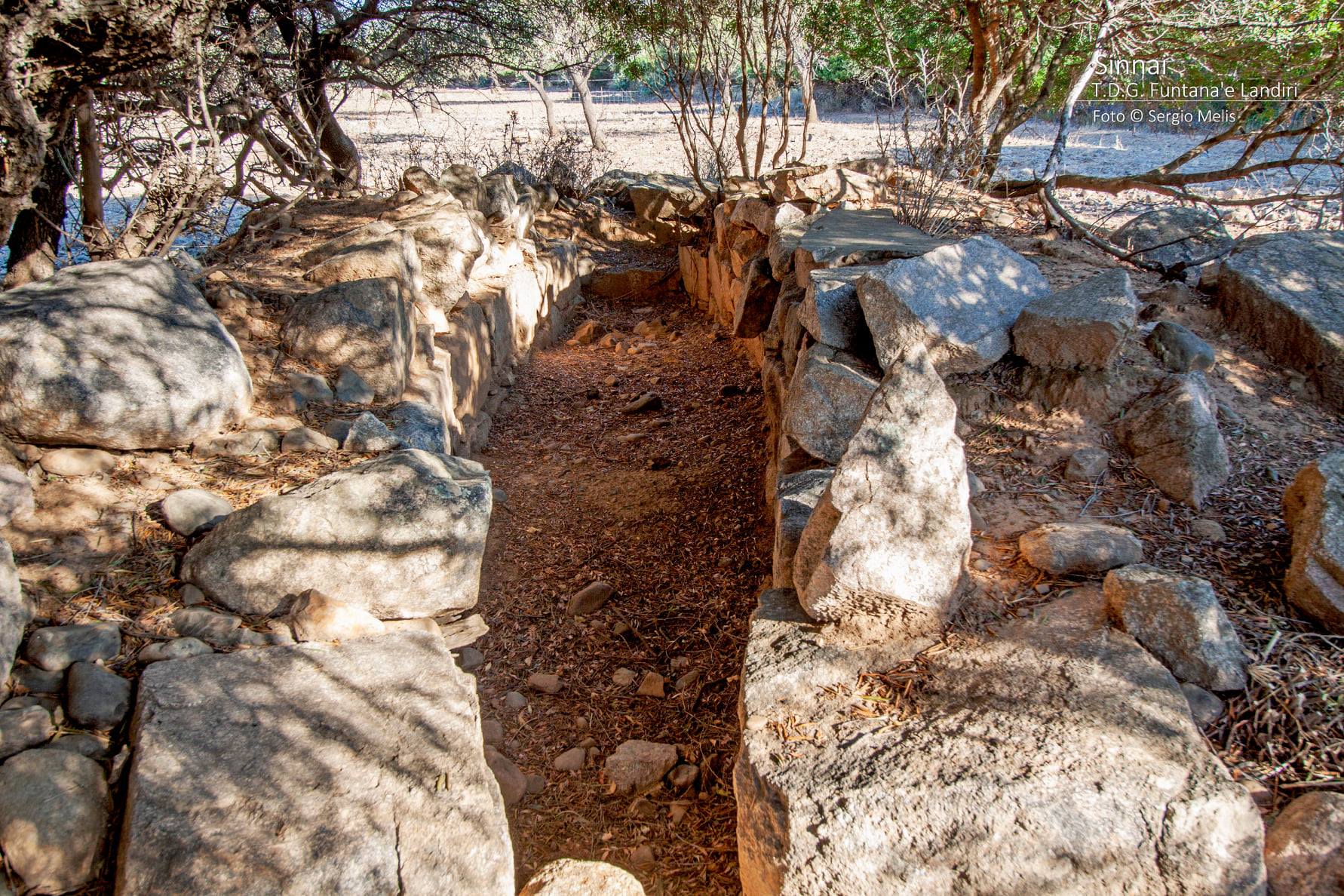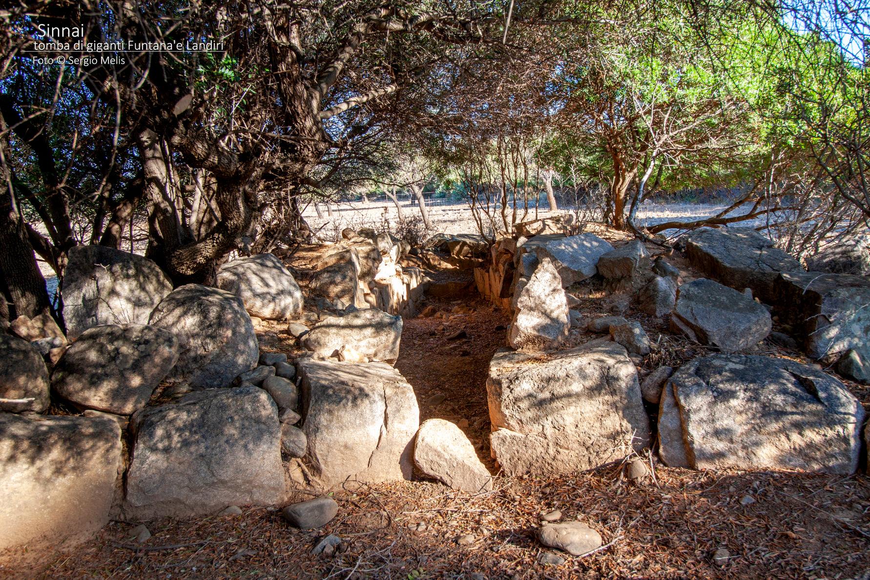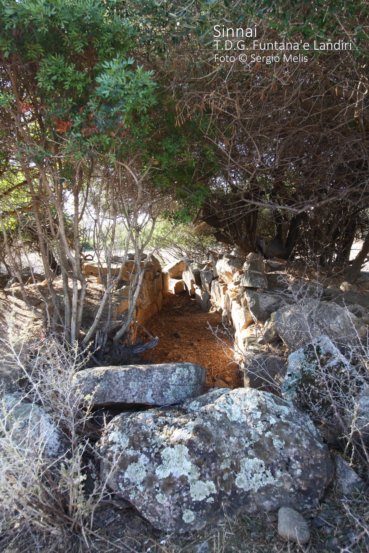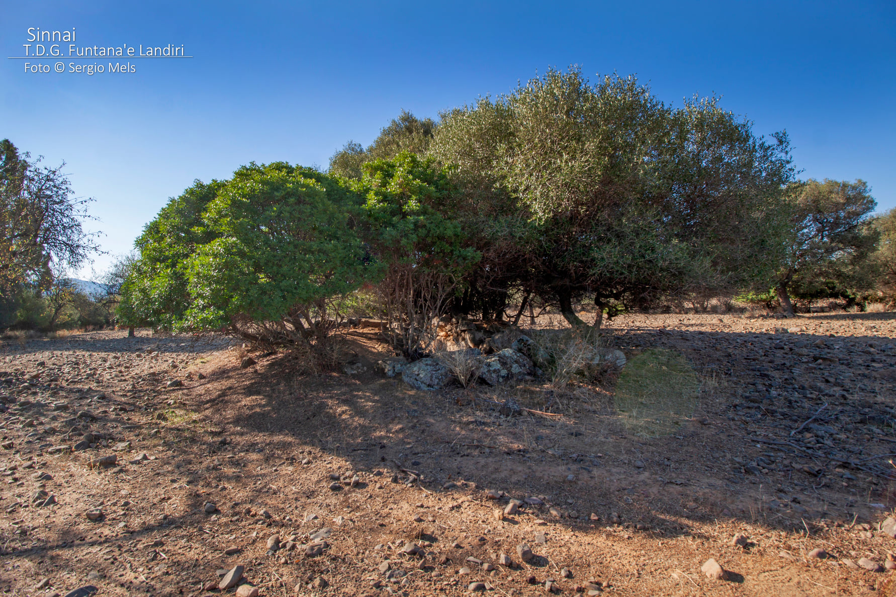 La tomba di giganti di Funtana’e Landiri (2), si trova all’estremità meridionale della piana lievemente ondulata di Sa Spragaxa, a circa 400 metri ad ovest del rio Santu Barzolu e poco distante dal corso d’acqua confluente di sinistra dello stesso.