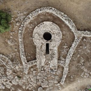 Impianto di vinificazione d’epoca romana rinvenuto presso il Nuraghe Arrubiu.