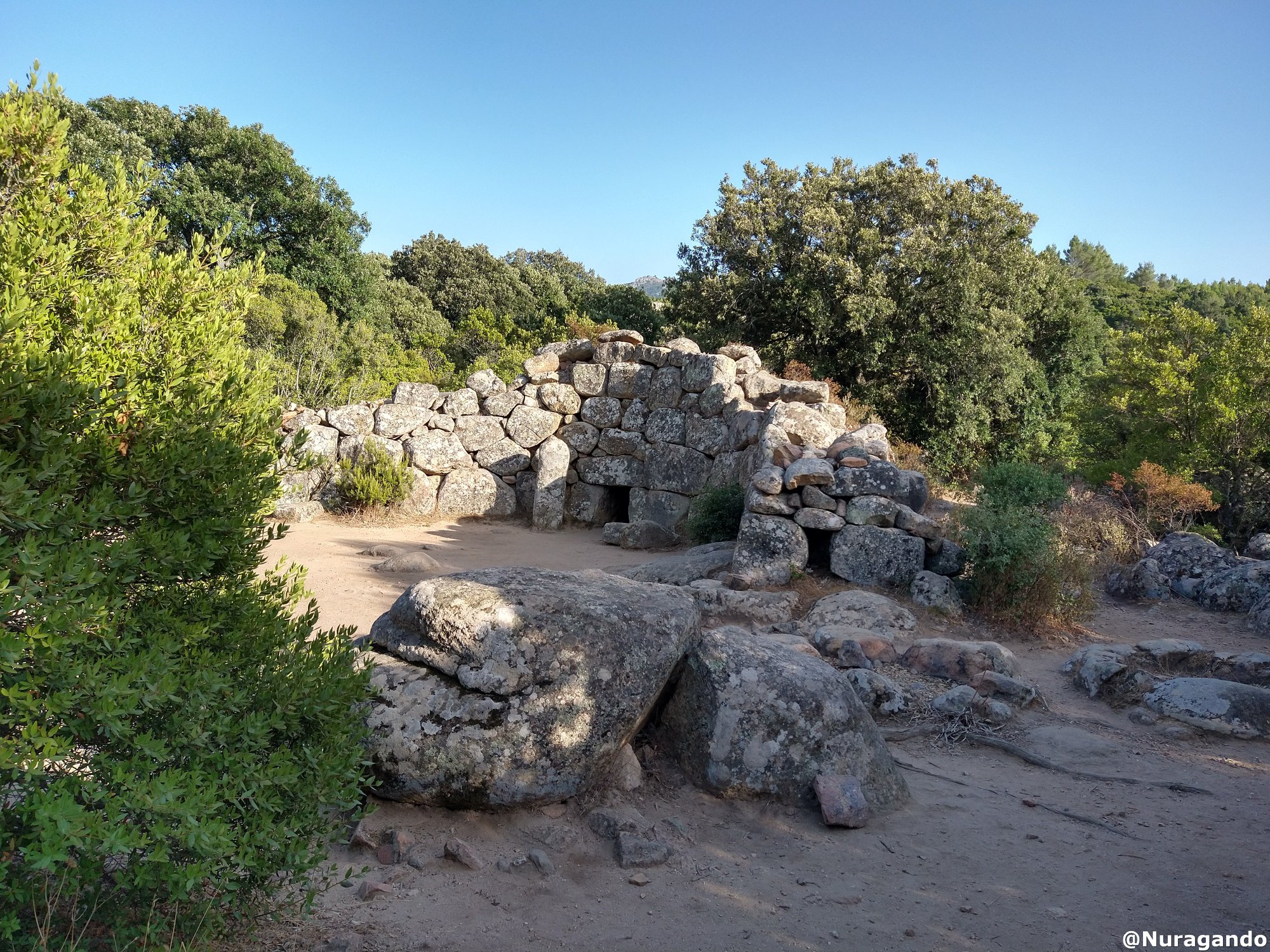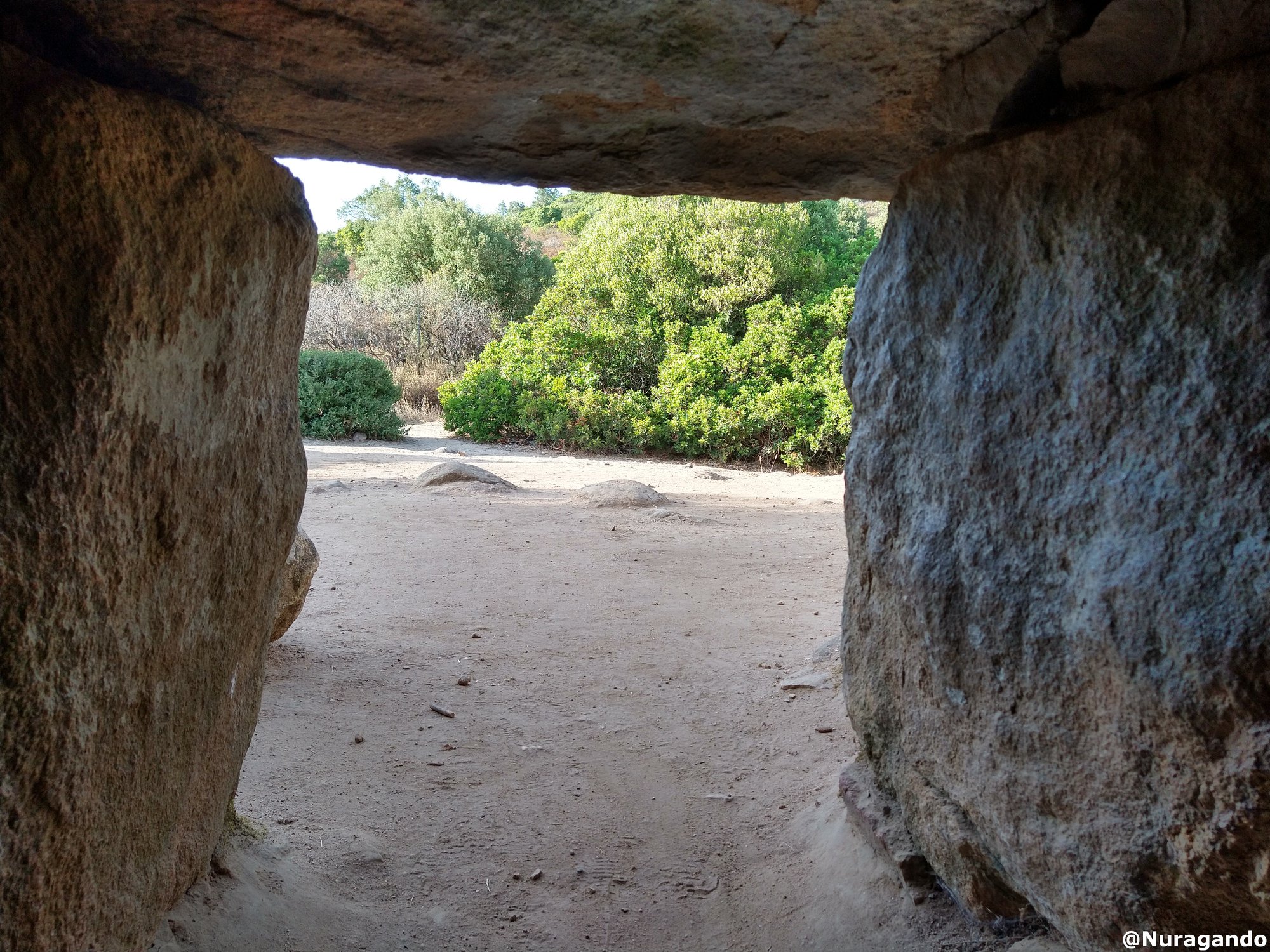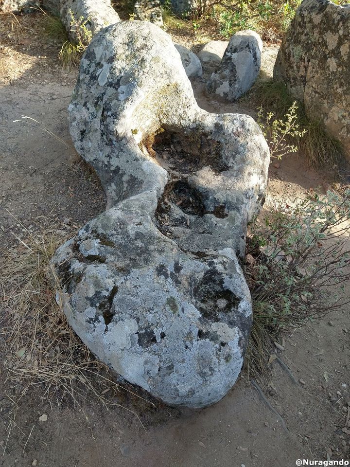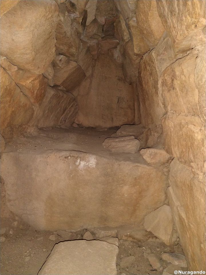 Conosciuta anche come “Sa Domu ”e s”Orku”, é costituita da blocchi di granito locale ordinati secondo lo “stile ciclopico”. Presenta la particolarità unica di essere orientata esattamente verso il Nord. Questa Tomba dei giganti è del tipo con “facciata a filari”, tipica delle tombe dei giganti del Sud della Sardegna la facciata e l”esedra, ampia 10 m., sono costruite in muratura megalitica; nell”area sulla destra dell”esedra sono presenti tre “focolari rituali”, di forma circolare.