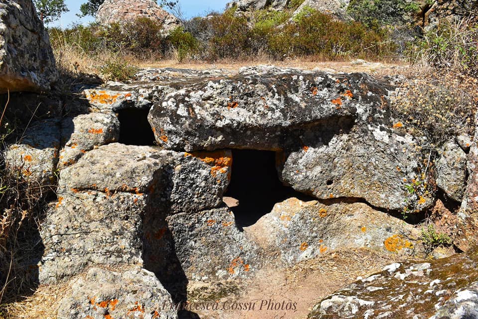 Conosciuta anche come “Sa Domu ”e s”Orku”, é costituita da blocchi di granito locale ordinati secondo lo “stile ciclopico”. Presenta la particolarità unica di essere orientata esattamente verso il Nord. Questa Tomba dei giganti è del tipo con “facciata a filari”, tipica delle tombe dei giganti del Sud della Sardegna la facciata e l”esedra, ampia 10 m., sono costruite in muratura megalitica; nell”area sulla destra dell”esedra sono presenti tre “focolari rituali”, di forma circolare.