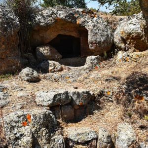 Domus de janas realizzate attorno a un acrocoro su cui insistono le tracce di una capanna o circolo megalitico