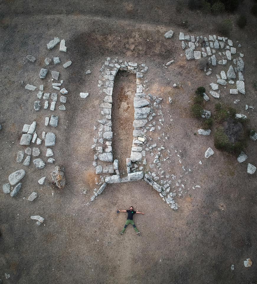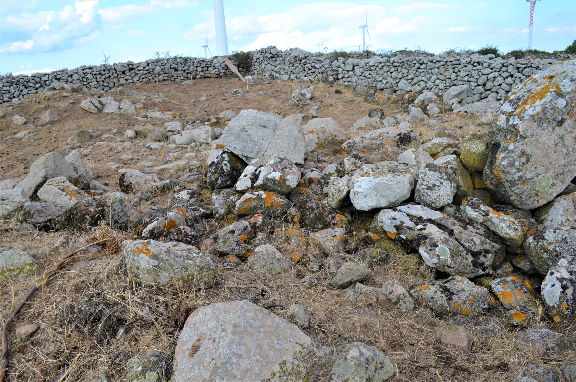 detta anche “Sa Grutta de Santu Giuanni”, presenta il classico schema planimetrico delle tombe di giganti. Il corpo tombale (m 22,10), disposto lungo l”asse NS con ingresso a S, è delimitato all”esterno da file di blocchi di granito di diverse dimensioni. Il prospetto risulta ancora parzialmente interrato e ingombro di pietrame.