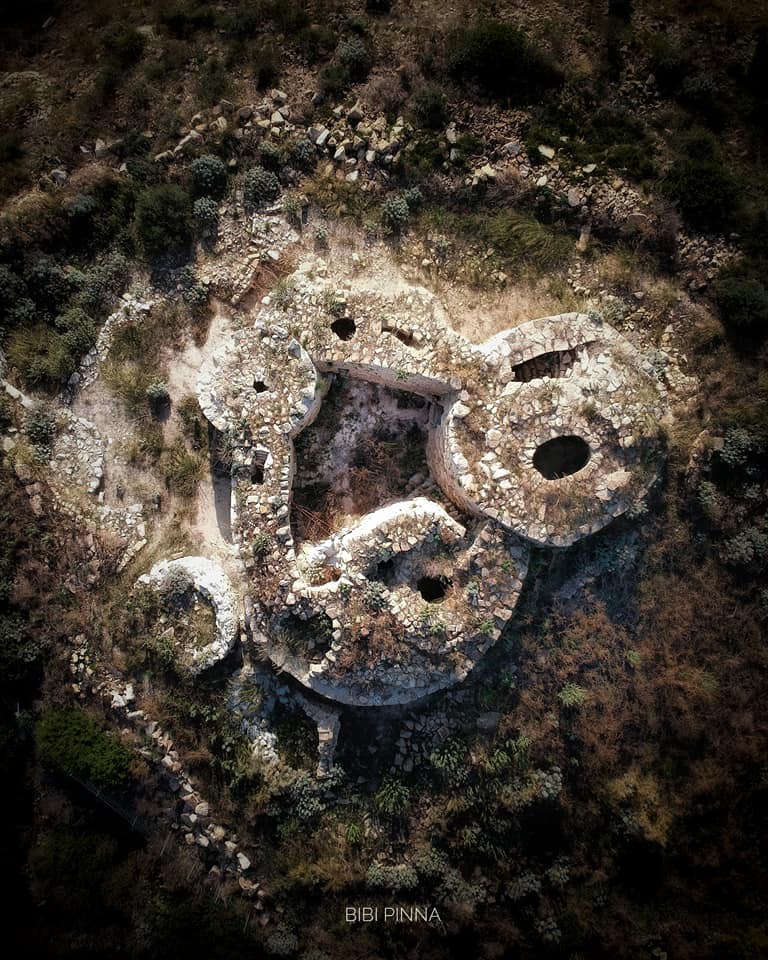 Il complesso consta di due pozzi sacri, una grande capanna e altri ambienti. I vari manufatti sono delimitati da muretti a secco montati a spina di pesce.