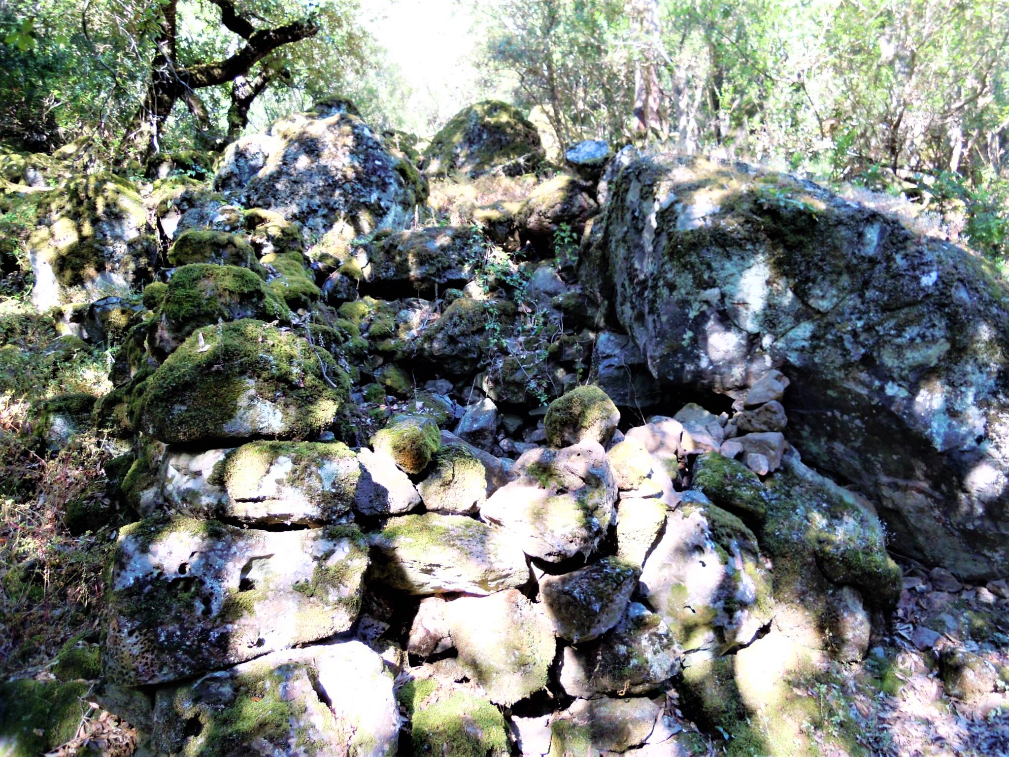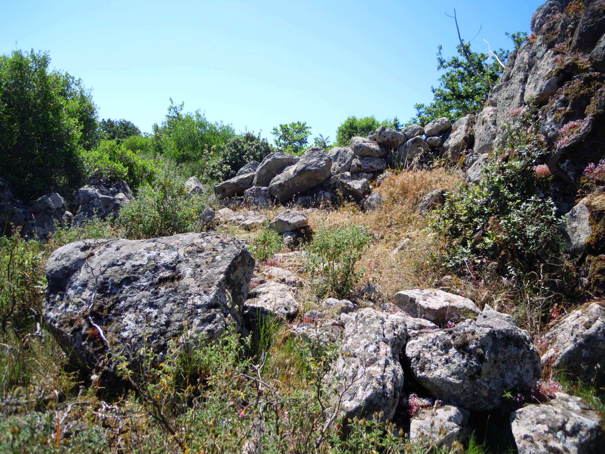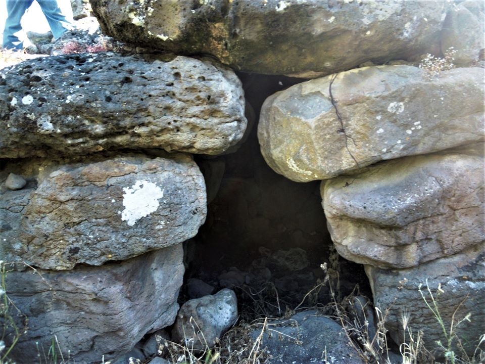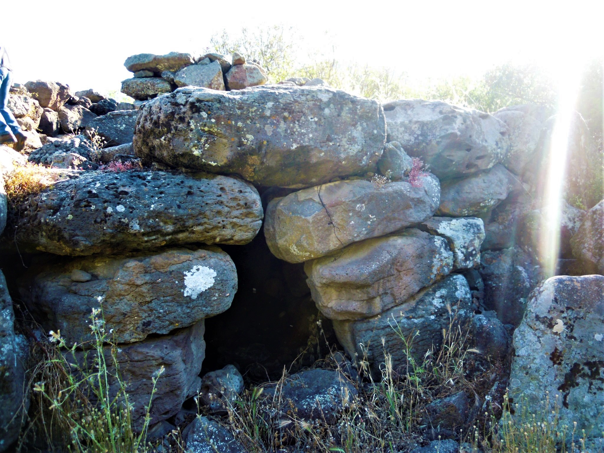 Sepoltura di epoca nuragica. Non c’è quasi nemmeno bisogno di descriverla tanto è visibile nella foto satellitare. La tecnica costruttiva è del tipo a filari ed è da notare l’allineamento verso Sud-Ovest non molto frequente nelle tdg.