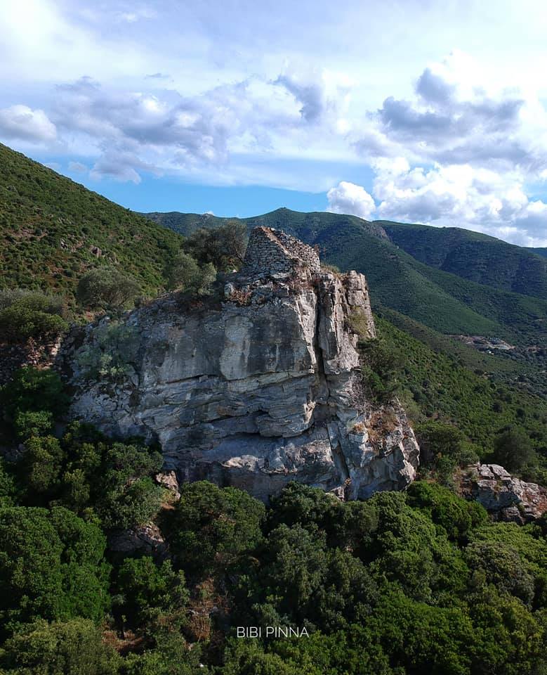 questo singolare monumento, composto da due torri sovrapposte, si erge solitario su una rupe altissima e impressionante a dominio della grande vallata del Rio “S’Acqua Callenti” proprio in prossimità del congiungimento con la valle del Flumendosa.
