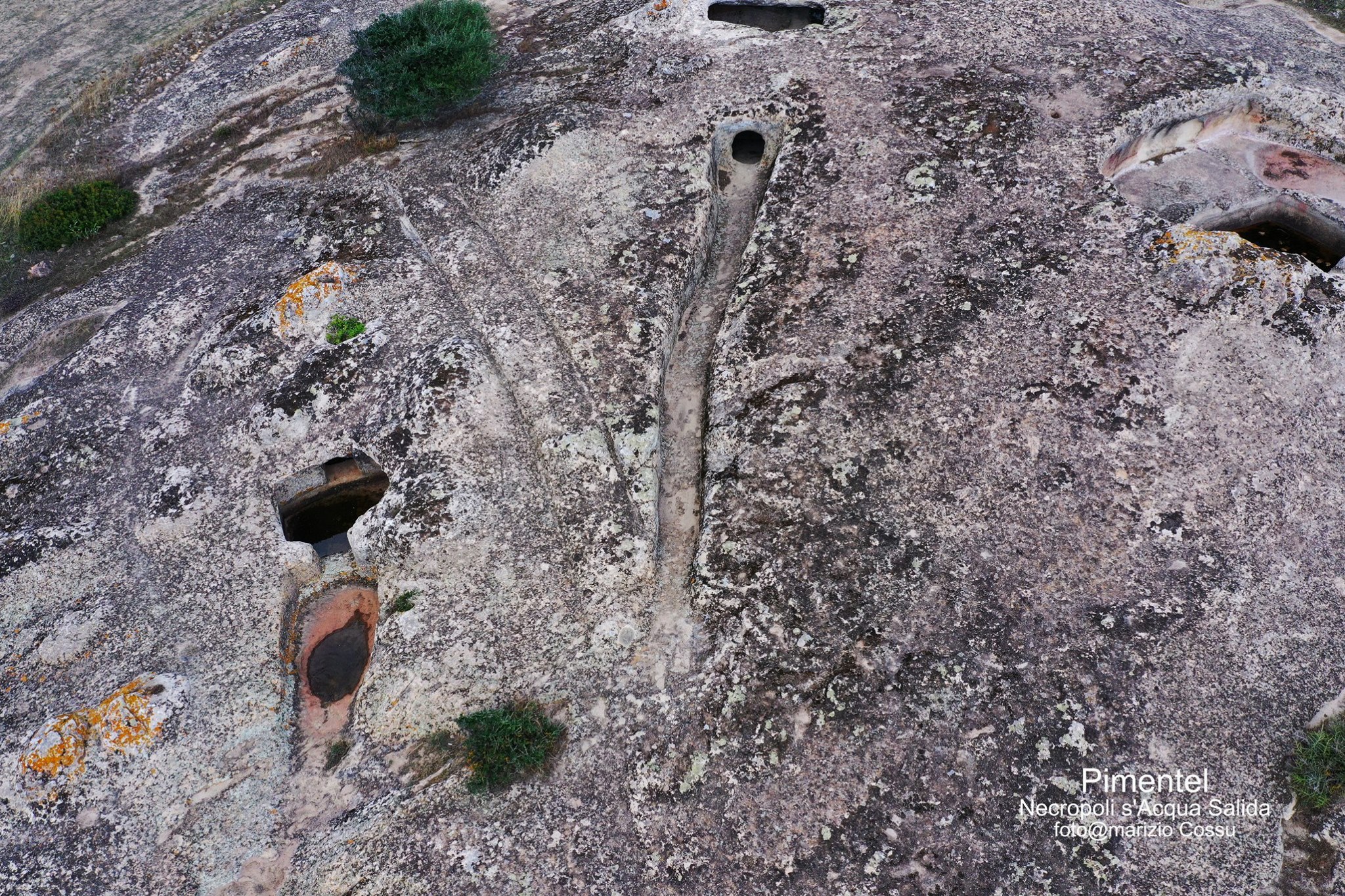 Costituita da domus de janas del tipo a proiezione orizzontale e a pozzetto (1, 2, 3, 4), l”altra da domus a pozzetto (5, 6, 7). Particolarmente notevole la tomba 1, risultato di diverse fasi costruttive: originariamente del tipo a pozzetto con anticella e grande cella, poi dotata di un lungo corridoio d”accesso al posto del pozzetto ed ampliata sulla destra della grande cella, annettendo tre camerette sepolcrali di una confinante sepoltura.