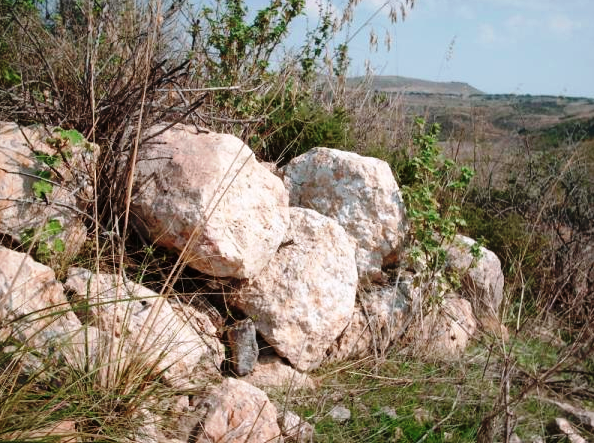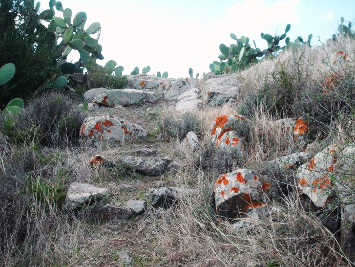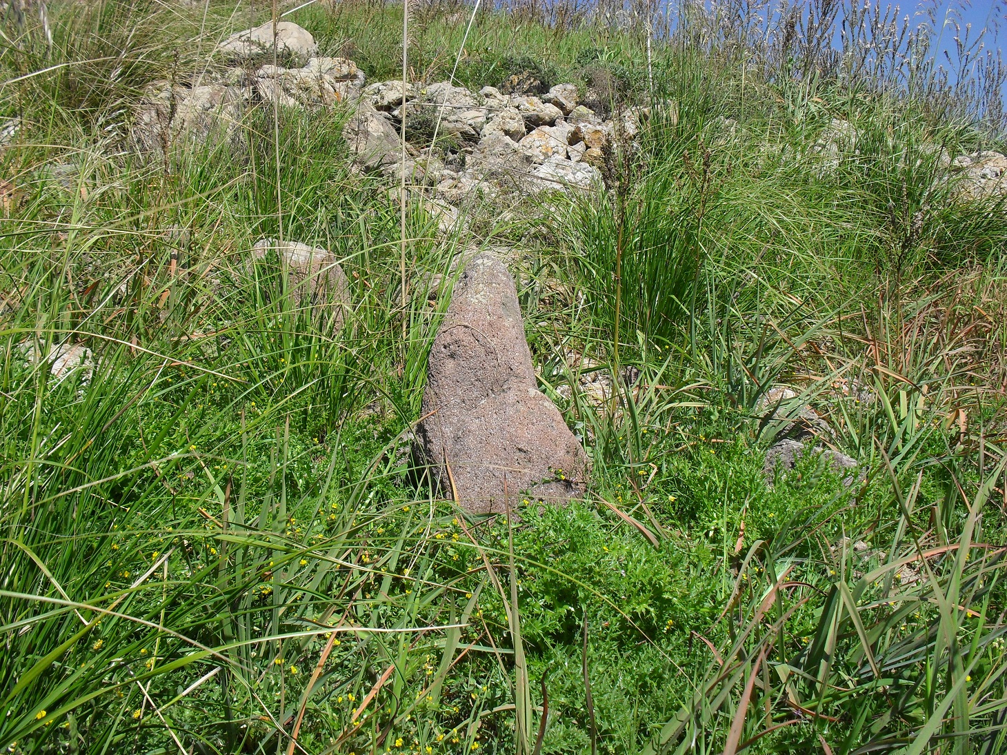 Nuraghe complesso, franato e di cui residuano pochi filari interrati, dove alla torre originaria seguì una addizione trasversale.