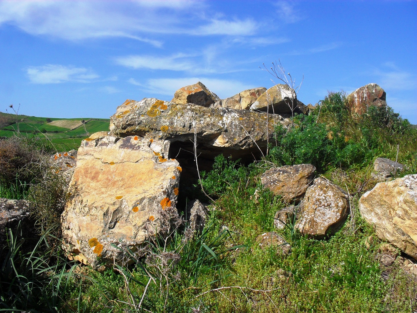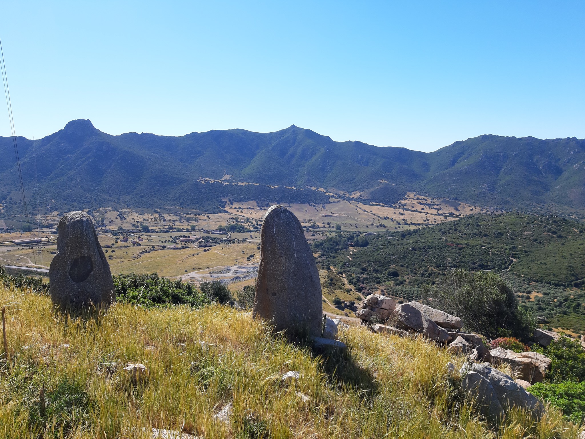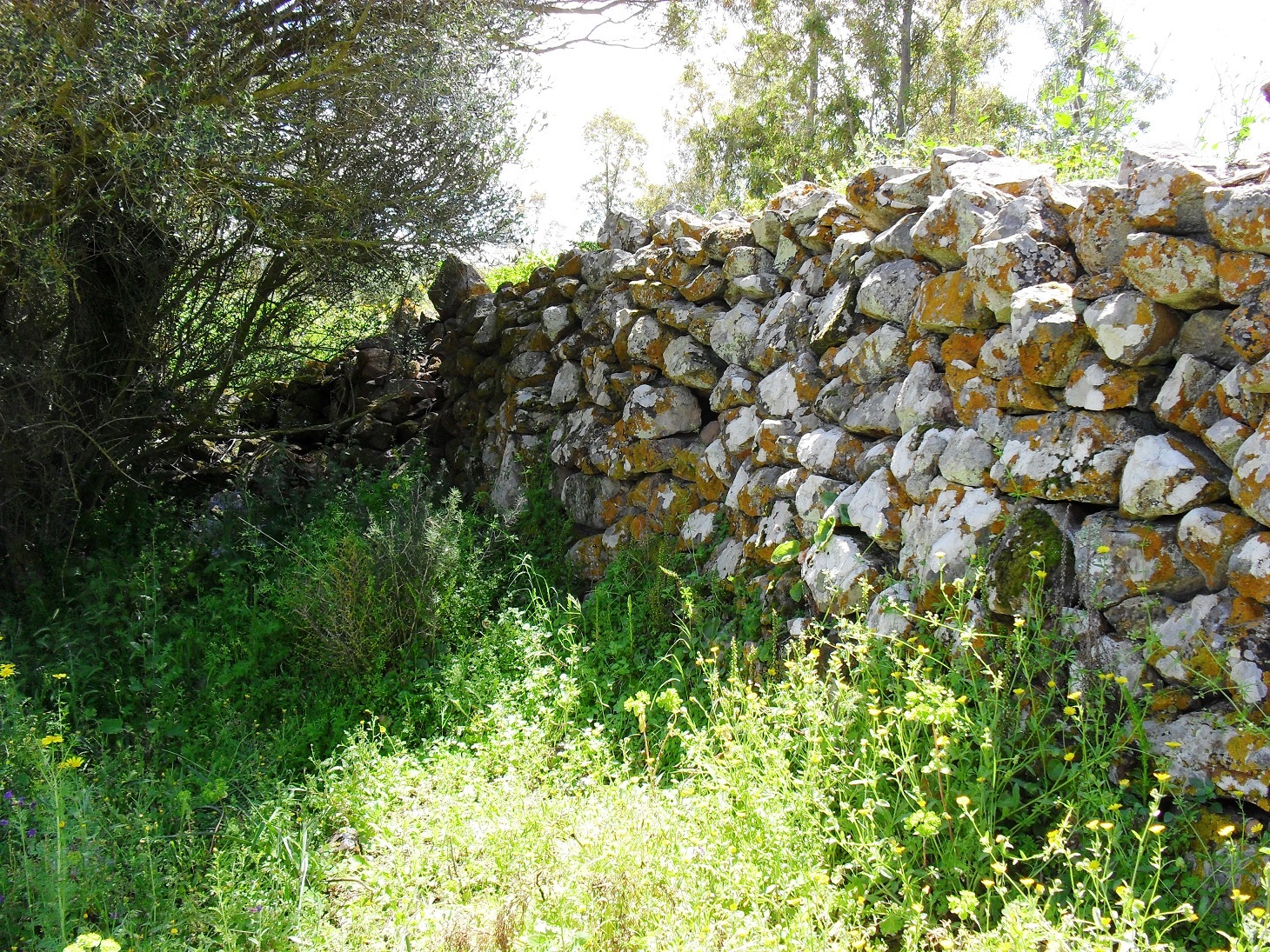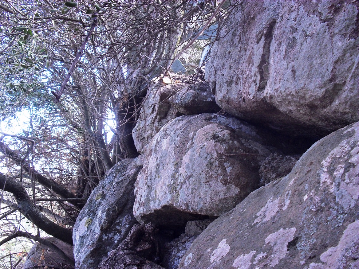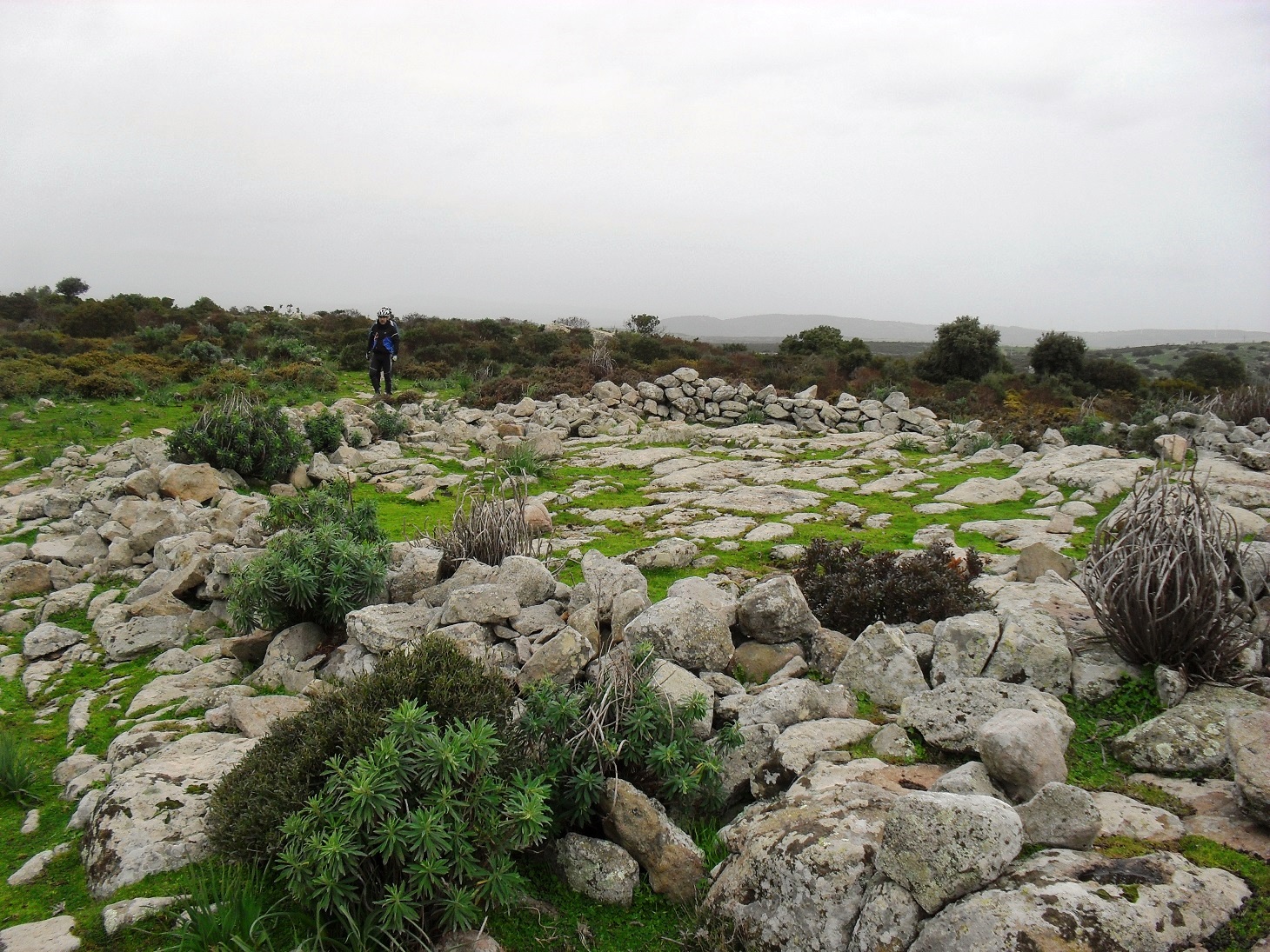 Addossati a delle rocce granitiche sono visibili i resti di un villaggio nuragico nei pressi di una vecchia corte abbandonata
