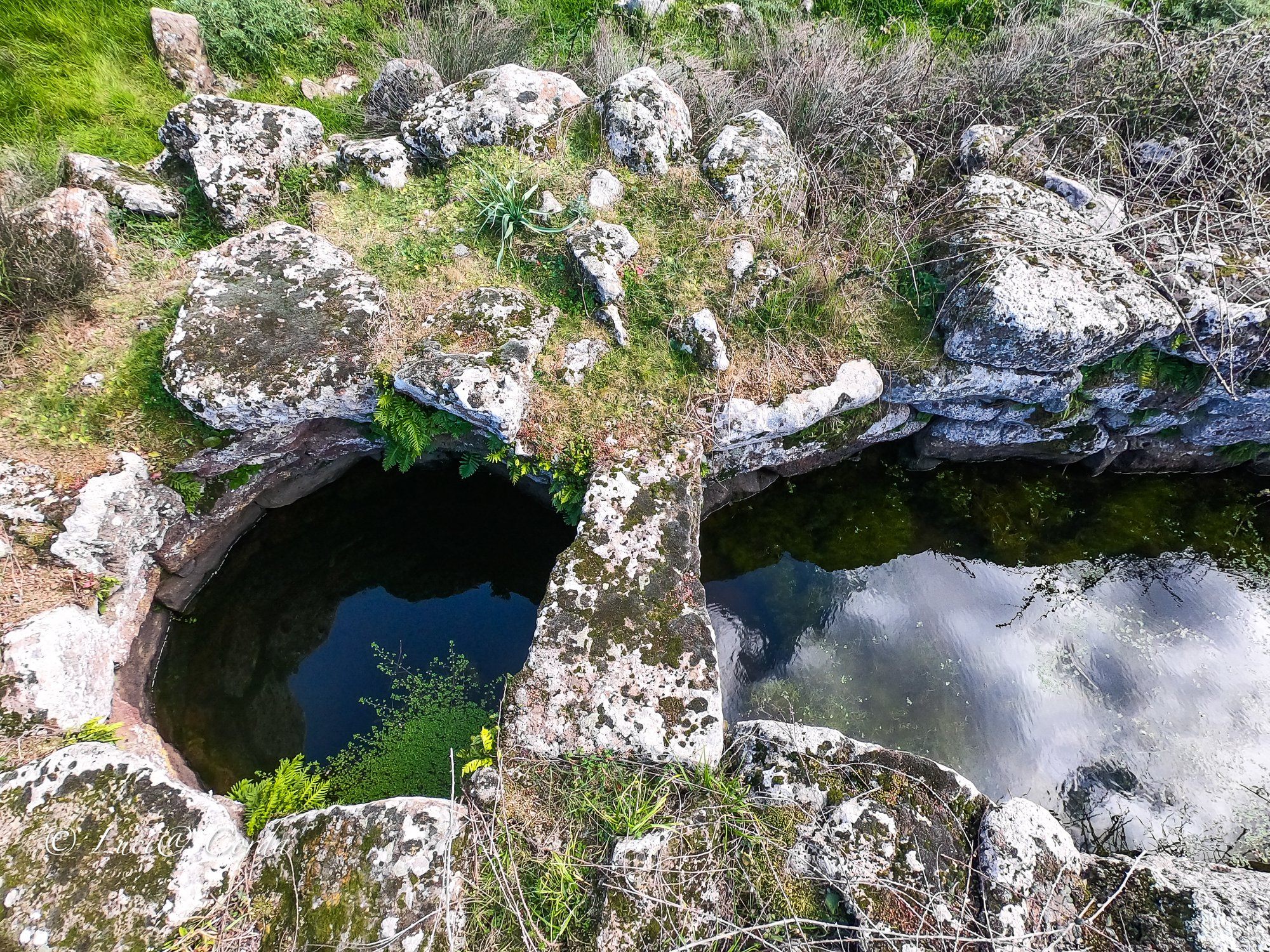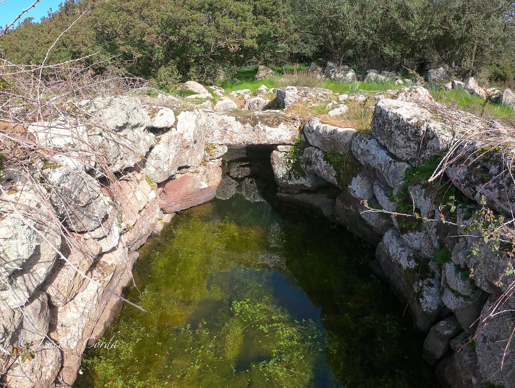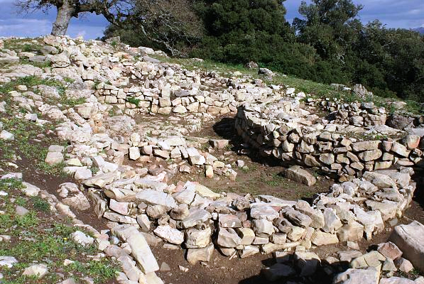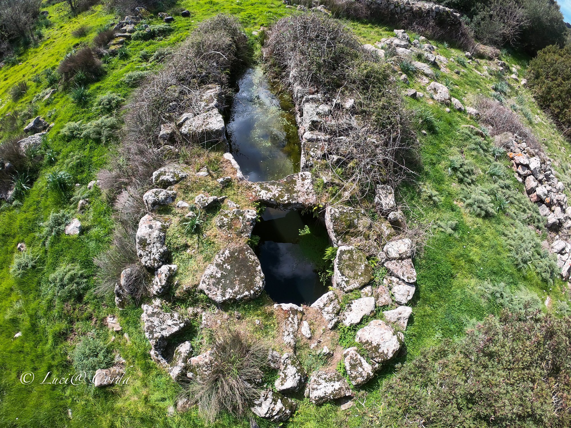 Il villaggio è costituito da tre pozzi sacri e una serie di capanne circolari. Il pozzo meglio conservato si trova nel settore settentrionale dell”area. Costruito con blocchi di scisto locale, si addossa a sud-ovest a una parete rocciosa naturale di modeste dimensioni. L”accesso al vano è decentrato rispetto all”asse della tholos. Quest”ultima è franata nella parte settentrionale. L”area antistante il vano d”ingresso al pozzo è delimitata da una serie di muri curvilinei a diverse quote.