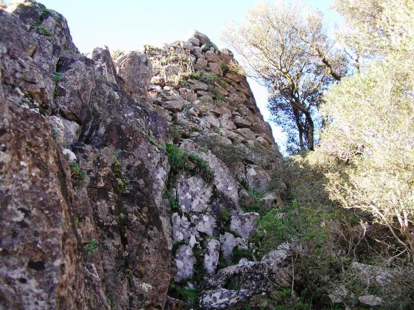 Nuraghe a tholos. Le torri erano 2, una completamente smembrata per costruire la chiudenda che percorre la montagna. Sul lato sud est la torre supera i 4 mt, mentre l”interno è ostruito da uno strato di terra e detriti che ne impedisce la fruibilità. Di fianco è presente una grotta esplorata dal gruppo speleologico di Uras.