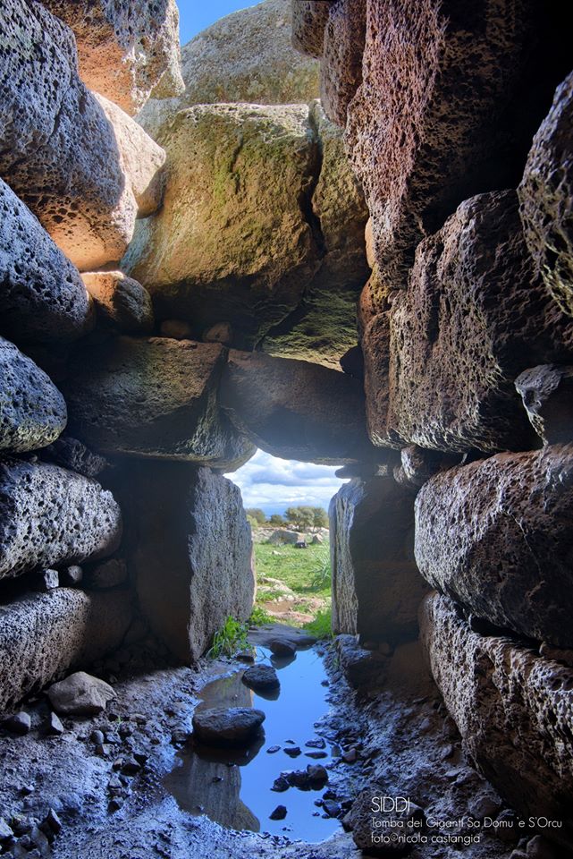 La tomba di giganti Sa Dom ”e S”Orcu è uno dei monumenti nuragici meglio conservati. Edificata su una leggero rialzo del terreno, è del tipo con fronte ad esedra a filari. Il corpo tombale, absidato, disposto lungo l”asse SE-NO, è lungo m 15,20. L”opera muraria è costituita da blocchi di basalto di medie dimensioni ben lavorati e disposti a filari regolari. In alcuni punti della muratura si osserva l”uso di zeppe di allettamento.