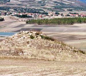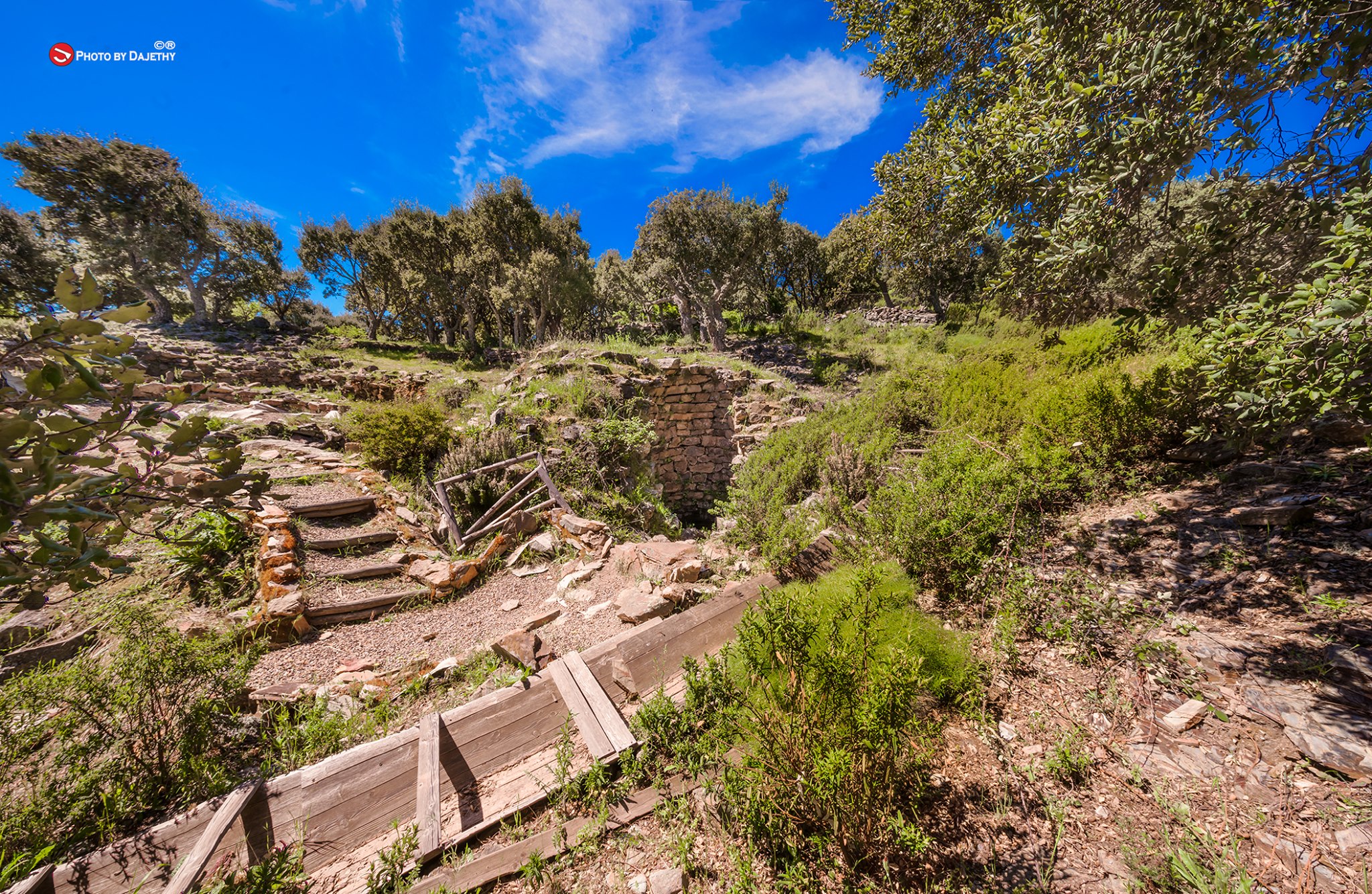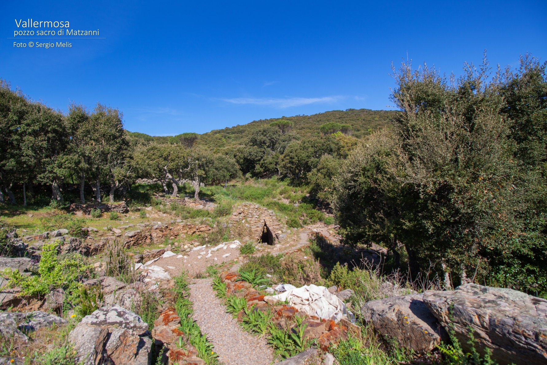 Il villaggio è costituito da tre pozzi sacri e una serie di capanne circolari. Il pozzo meglio conservato si trova nel settore settentrionale dell”area. Costruito con blocchi di scisto locale, si addossa a sud-ovest a una parete rocciosa naturale di modeste dimensioni. L”accesso al vano è decentrato rispetto all”asse della tholos. Quest”ultima è franata nella parte settentrionale. L”area antistante il vano d”ingresso al pozzo è delimitata da una serie di muri curvilinei a diverse quote.