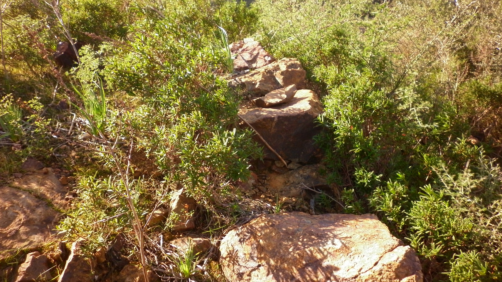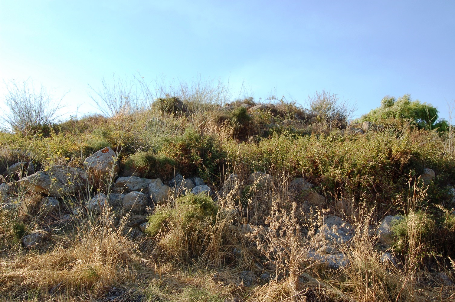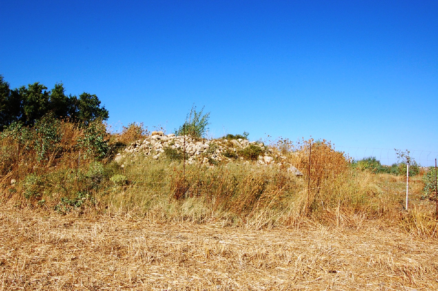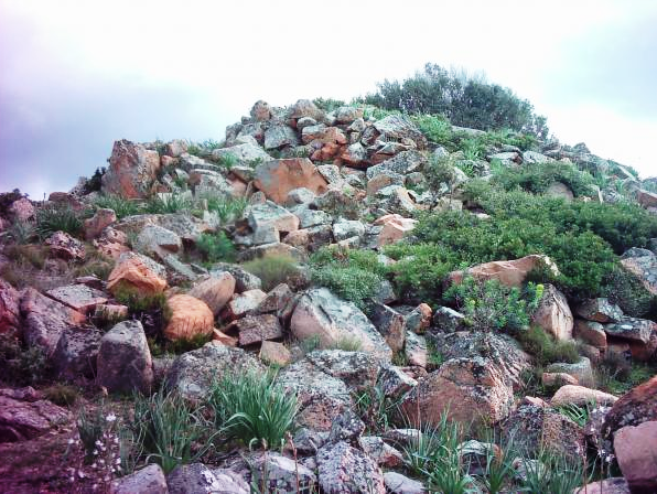 Nuraghe totalmente distrutto. Nella piccola collinetta sono visibili piccole pietre che ricoprono insieme alla terra il nuraghe che non c’è più.