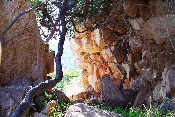 Questo Nuraghe è disposto longitudinalmente e presenta diverse cavità (presumibilmente torri..) di piccole dimensioni.. se ne possono vedere 4 dalla foto aerea,ma sono almeno 5 se non di più…è veramente interessante e varrebbe la pena di sistemare le parti ancora in piedi,oggi ingombrate dai crolli delle parti superiori,per capire meglio come fosse disposto;le torri sono di piccole dimensioni e non si capisce se fossero rampe d’accesso per una struttura superiore o altro.