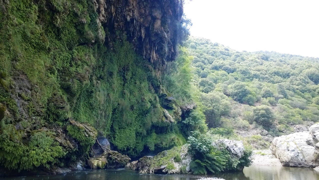 Una sorgente posta sopra una parete calcarea di travertino genera un continuo gocciolio lungo una parete a strapiombo sull’alveo del Flumendosa. Il continuo scorrimento dell’acqua ha creato concrezioni calcaree e consentito la crescita di una vegetazione rigogliosa di capelvenere.