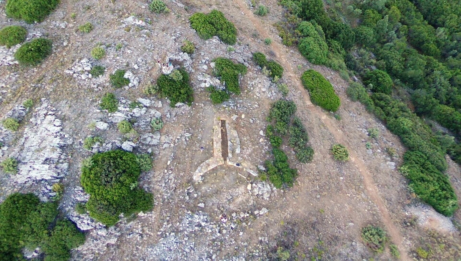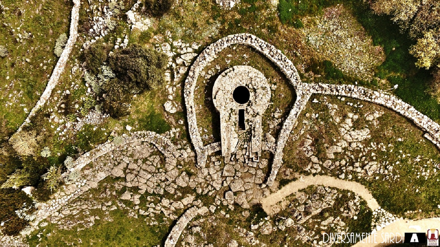 Sepoltura di epoca nuragica. Non c’è quasi nemmeno bisogno di descriverla tanto è visibile nella foto satellitare. La tecnica costruttiva è del tipo a filari ed è da notare l’allineamento verso Sud-Ovest non molto frequente nelle tdg.