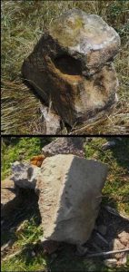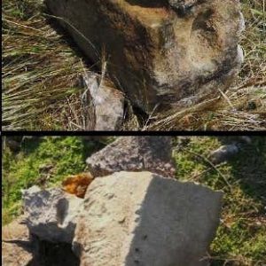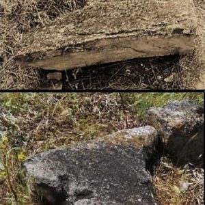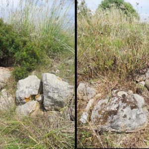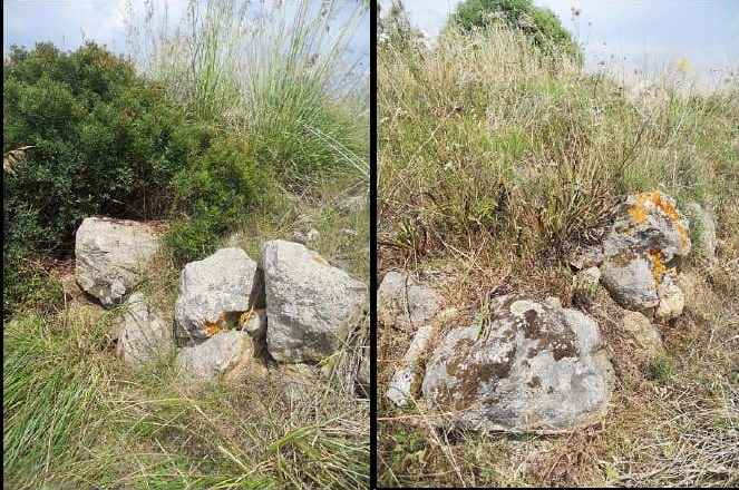 Grotticelle frequentate e modificate dal neolitico. Nella vicinanza ci sono i resti di un villaggio nuragico. Pozzo sacro smantellato con mezzi meccanici. Restano alcuni blocchi di arenaria e conci a T. Dove c’era il pozzo o il tempio ora c’e un cratere.