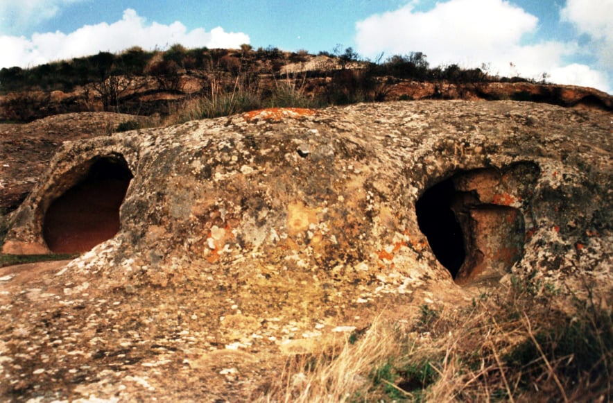 Queste tre tombe ipogeiche sono poste lungo il versante di un piccolo rilievo (quota m. 244) ai margini dell’ampia vallata di S’Ùrri. La prima ha una sola cella di forma ellittica con volta a forno. La seconda si compone di atrio anticella e camera sepolcrale di forma quadrangolare che sulla parete dx presenta una nicchia. La camera comunica sulla sinistra cin una cella rialzata più ampia di forma ellittica che, sulla parete destra presenta due nicchiette all’altezza della volta, mentre su quella frontale una decorazione in rilievo rappresentante due facce umane.